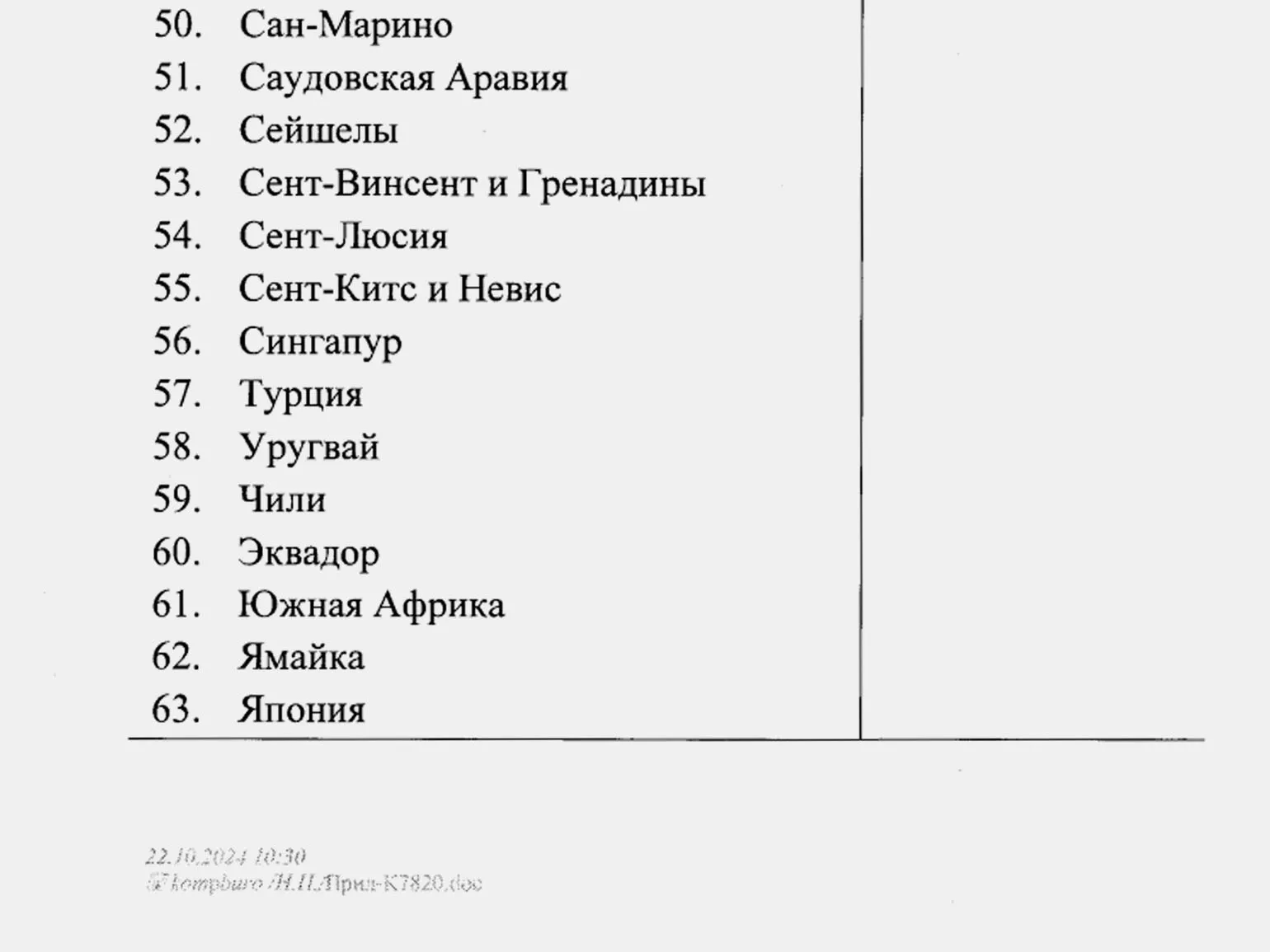 В обновленный черный список вошли все страны Европейского Союза, а также Австралия, Монако, Лихтенштейн и Новая Зеландия. Эти изменения связаны с тем, что указанные государства ограничили или полностью прекратили обмен финансовой информацией с Россией. Данные меры могут оказать значительное влияние на финансовые операции и международные отношения, подчеркивая важность прозрачности в финансовых взаимодействиях между странами.