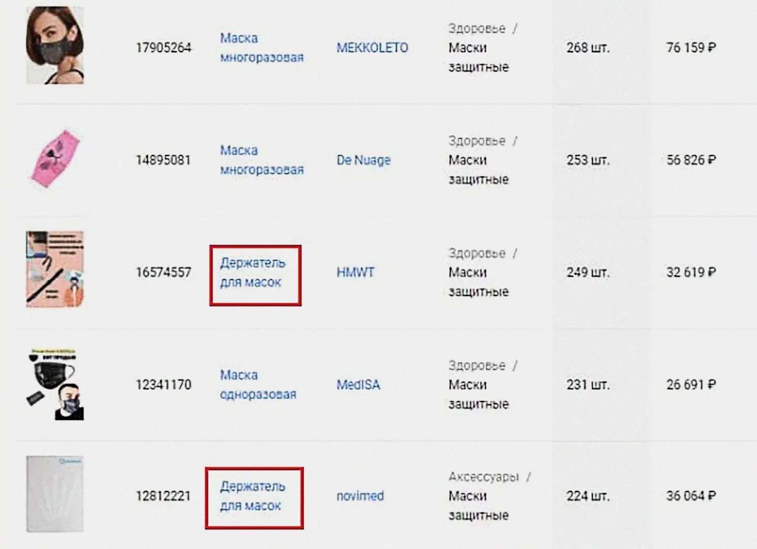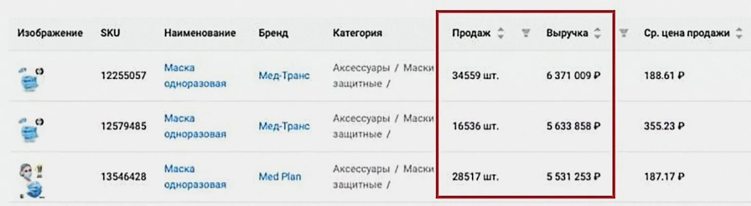 Согласно аналитическим данным SellerFox, в сентябре 2020 года месячная выручка ведущих продавцов в категории «Маски защитные» на платформе Wildberries достигала примерно 6 миллионов рублей. В этом сегменте рынка наибольшей популярностью пользовались комплекты одноразовых масок.