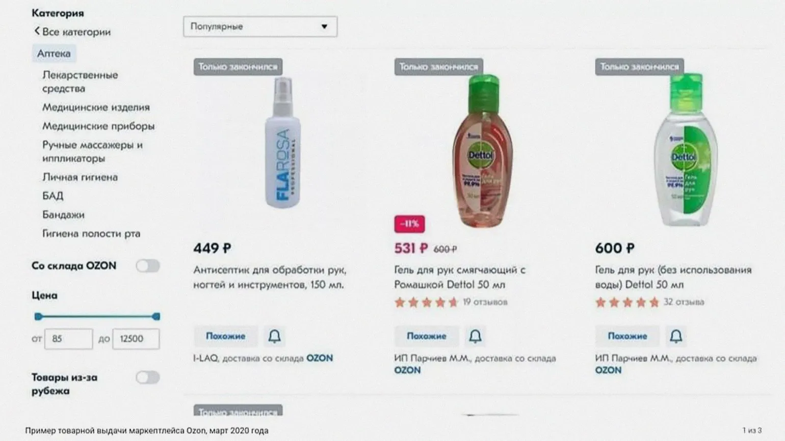 Ситуация на рынке антисептиков и масок продолжала колебаться: эти товары то появлялись, то исчезали с маркетплейсов. В ответ на изменения спроса, торговые площадки начали вводить ценовые ограничения, что привело к изменению формата продаж. Антисептики начали продаваться в комплекте и наборами, что позволило избежать накопления остатков на складах и оптимизировать процесс сбыта.