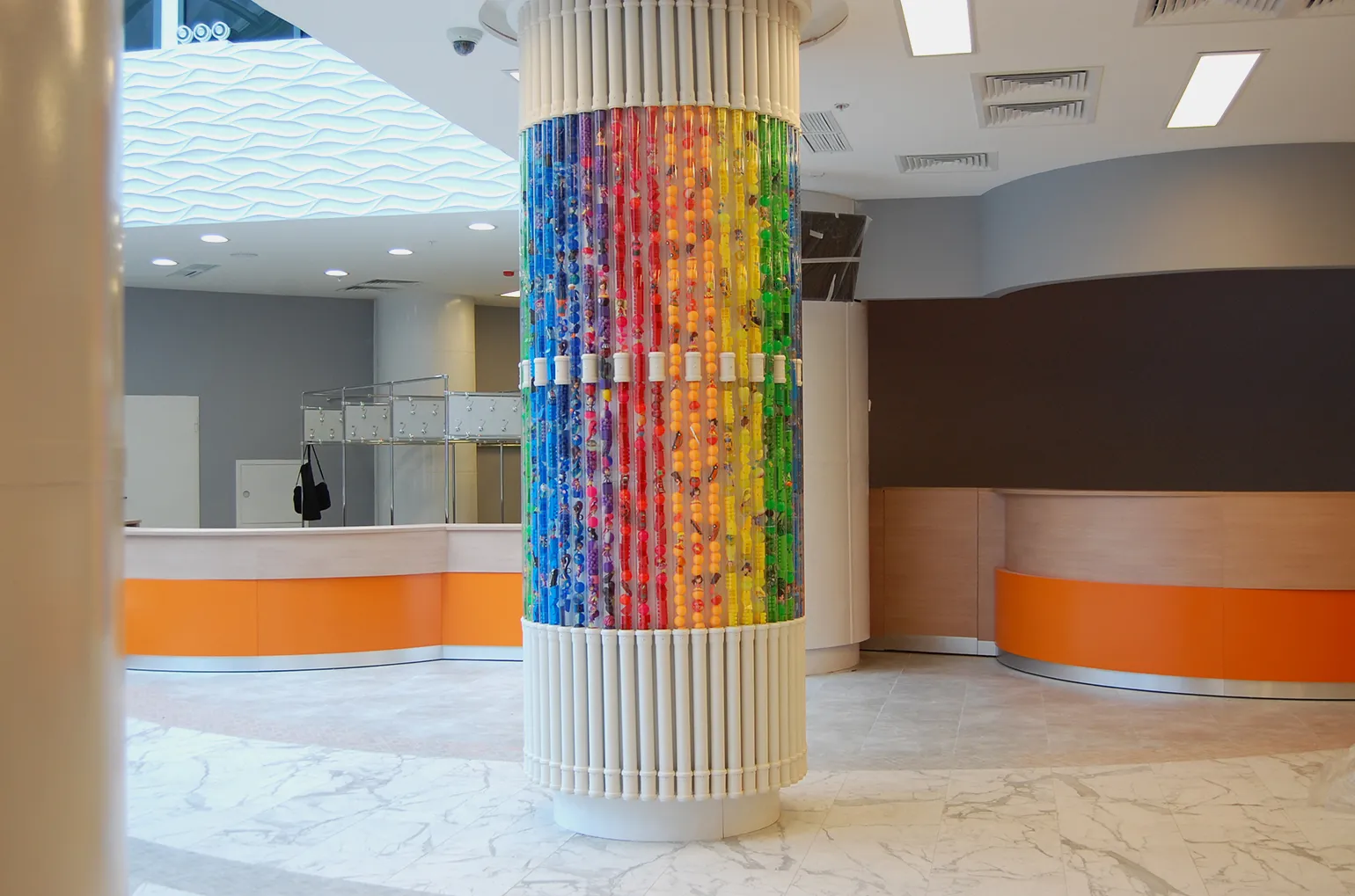 В 2014 году я курировала проект «Арт-прививка», направленный на улучшение условий в Морозовской детской больнице. Основной целью проекта было создание более комфортной атмосферы для детей, что помогло снизить их страхи и стресс во время пребывания в медицинском учреждении. В рамках проекта были установлены арт-объекты, такие как детские дорожные знаки в лестничных пролётах, пеньки-арбузики в игровой комнате вместо традиционных стульев и гигантская кардиограмма на фасаде больницы, выполненная из прозрачных труб с игрушками. Эти элементы не только украсили пространство, но и сделали его более дружелюбным и привлекательным для маленьких пациентов.