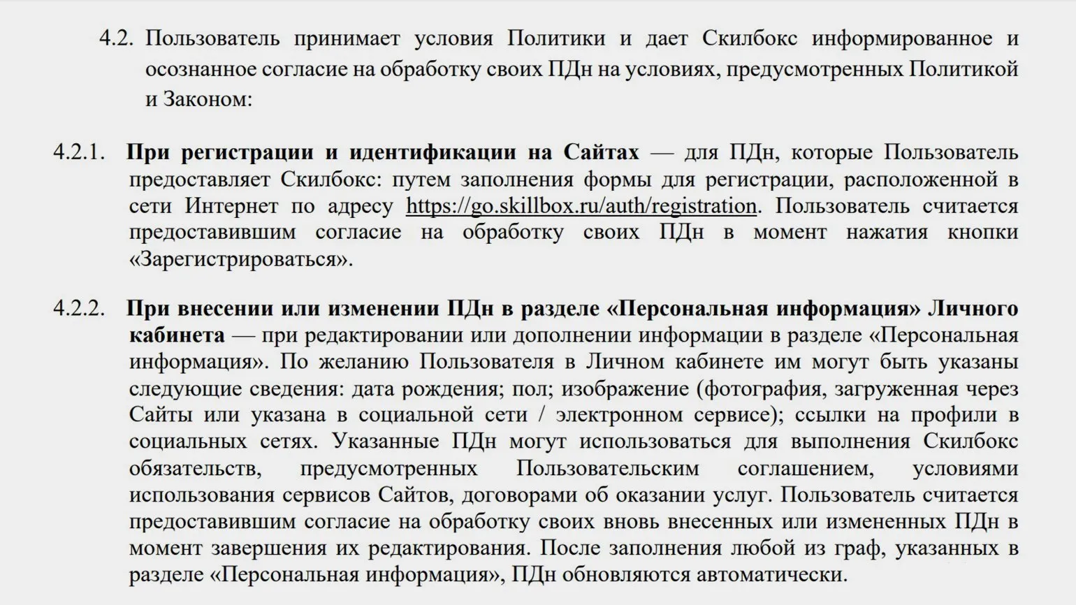 При обработке данных исключительно в онлайн-формате важно указать в политике конфиденциальности конкретные ситуации, в которых пользователь дает согласие на обработку своей информации. Это может быть реализовано, например, через установку галочки в соответствующем чекбоксе. Такой подход обеспечивает прозрачность и соответствие требованиям законодательства о защите персональных данных.