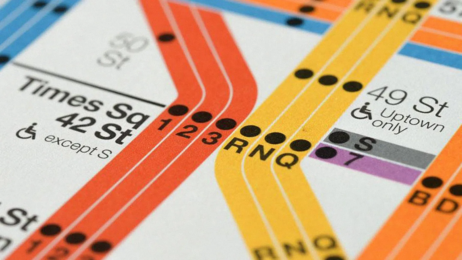 Схема Массимо Виньелли вблизи. Изображение: Massimo Vignelli / Beatriz Cifuentes / Yoshiki Waterhouse / MTA New York City Subway