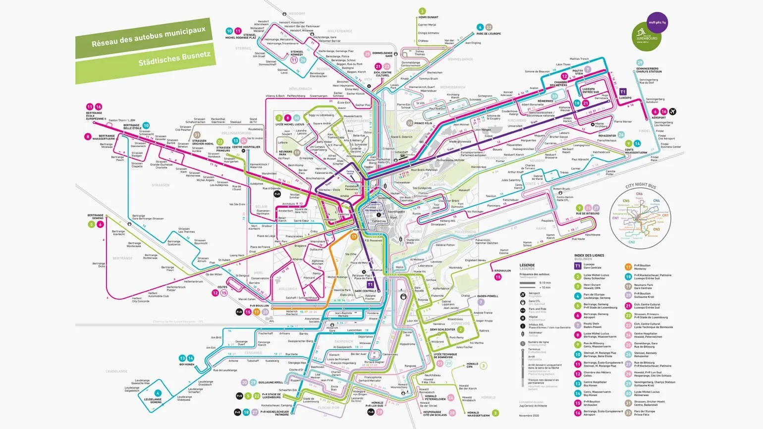 Схема автобусного сообщения Люксембурга. Дизайн: Юг Черович / Inat