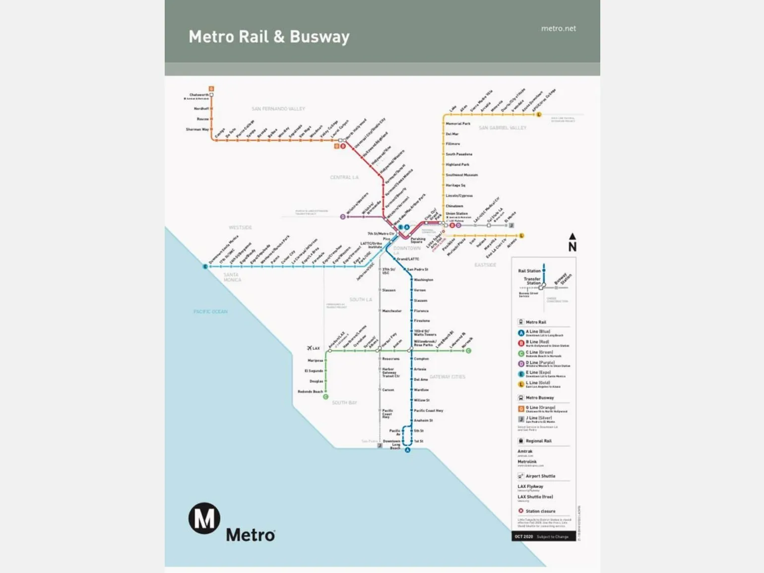 Схема метро и автобусные маршруты Лос-Анджелеса. Изображение: metro Los Angeles