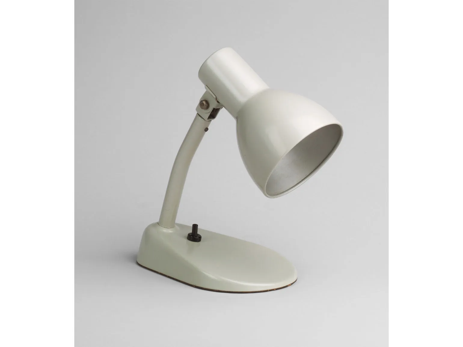Эта лампа стала настоящей инновацией своего времени. Корпус и подставка изготовлены из лакированной стали, что придаёт изделию современный и стильный вид. Подвижное крепление плафона позволяет легко регулировать направление света, что объединяет в себе эстетические качества и практическую функциональность. Такой дизайн делает лампу идеальным выбором для любого интерьера, обеспечивая комфортное освещение и стильное оформление пространства.