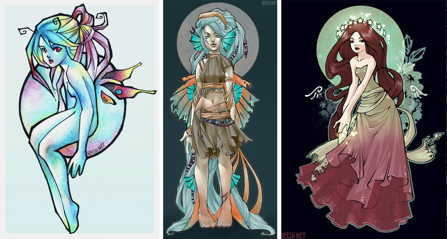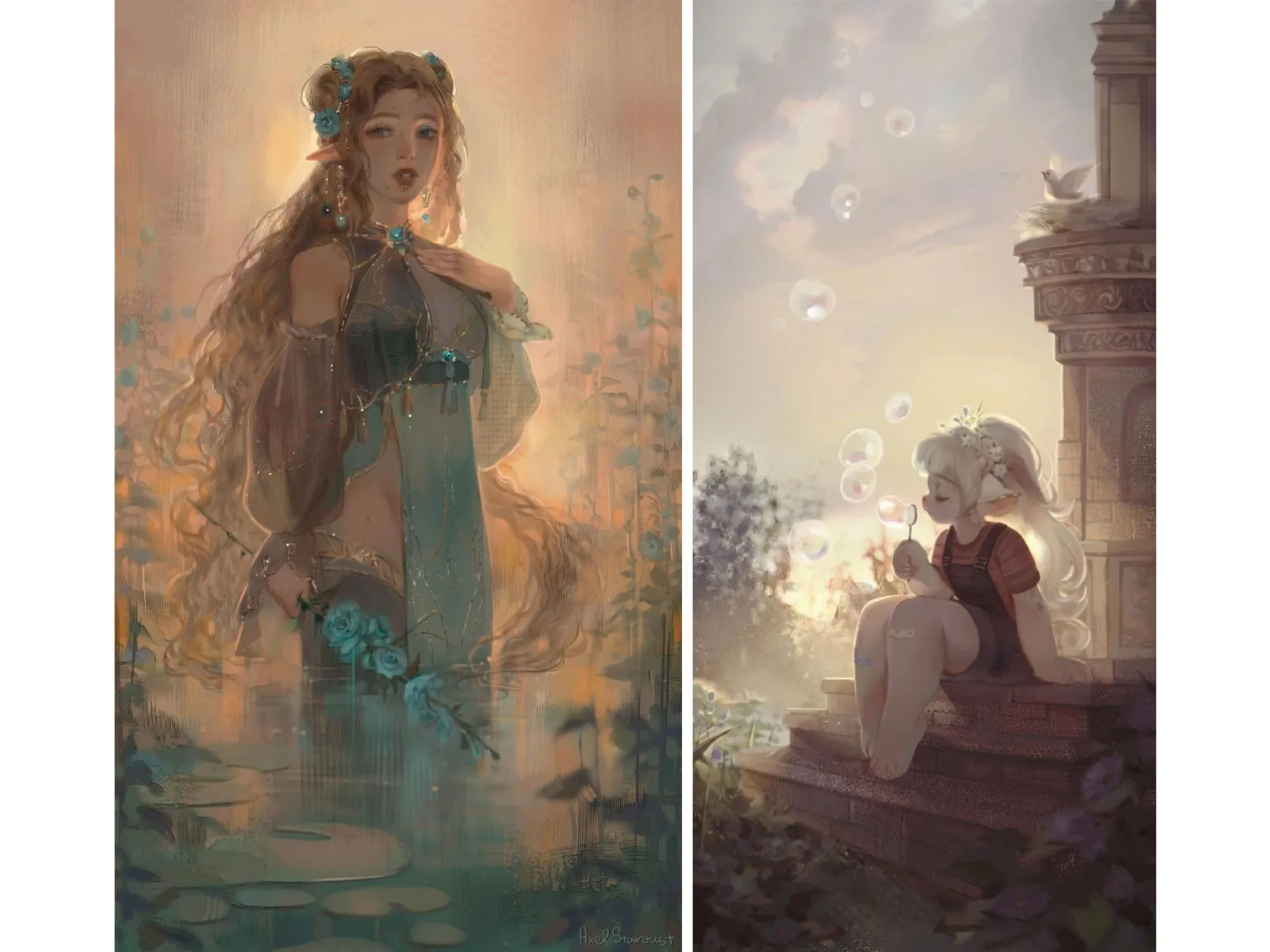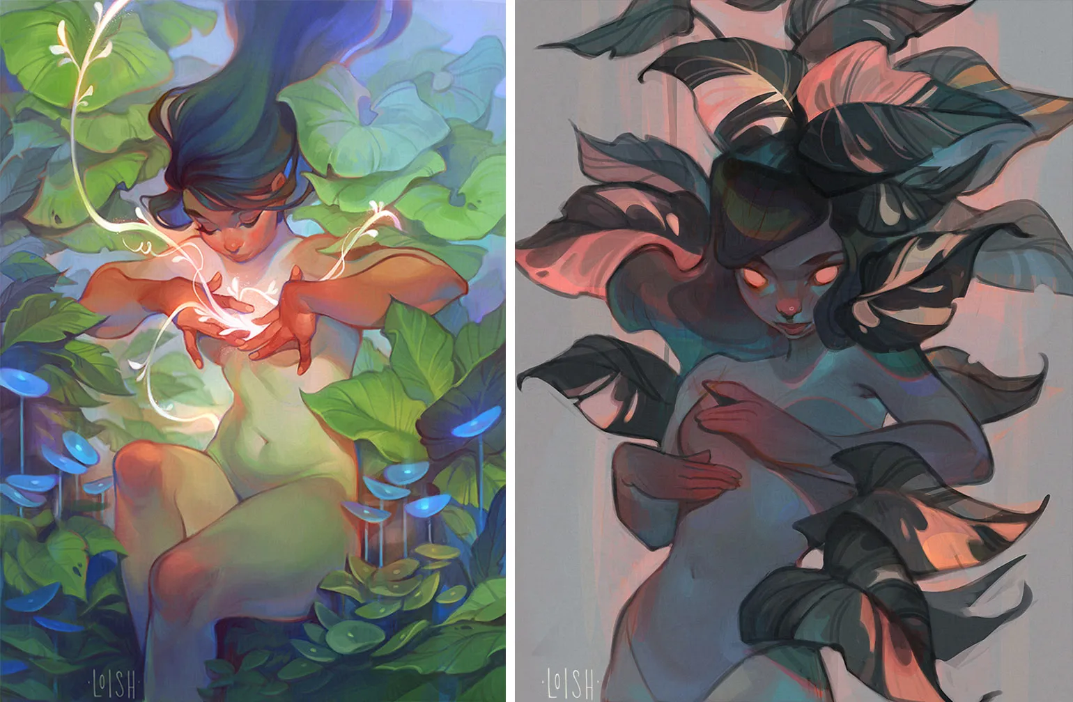 Я отказалась от всех предвзятых представлений о том, каким должен быть фэнтези-арт, и сосредоточилась на самом процессе творчества. Мне всегда нравились мои предварительные скетчи больше, чем окончательные работы, поэтому я вернулась к линии и выбрала более простой цветовой стиль. Как только я приняла себя и свои истинные предпочтения, всё стало на свои места.