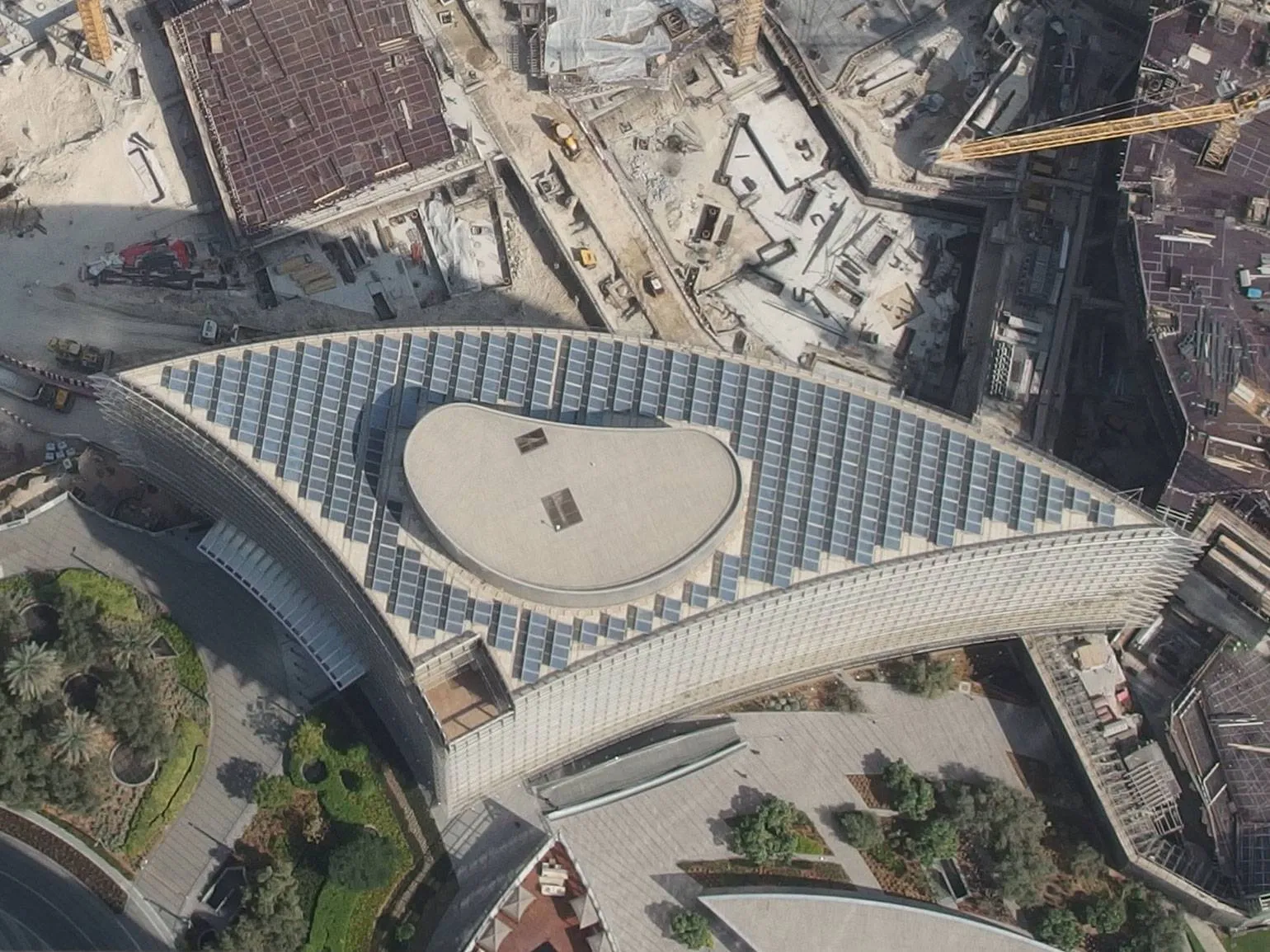 Для снижения потребления электроэнергии на пристройке Бурдж-Халифы установлены плоские солнечные коллекторы. Эти устройства преобразуют солнечное излучение в тепло, нагревая теплоноситель. Полученное тепло затем передаётся воде через теплообменник, что обеспечивает эффективный нагрев воды для системы водоснабжения. Использование солнечных коллекторов не только способствует экономии энергии, но и снижает углеродный след, делая здание более экологически чистым и энергоэффективным.