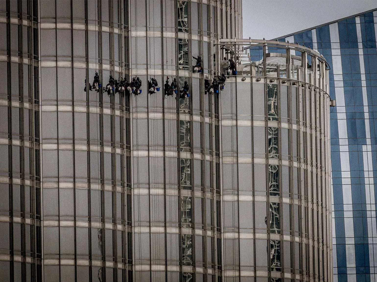 Бурдж-Халифа, являющийся самым высоким небоскрёбом в мире, был построен за рекордно короткий срок и завершён в январе 2009 года. Внешняя облицовка здания была закончена уже к сентябрю того же года. За этой грандиозной строительной работой стоит не менее впечатляющая задача — регулярная мойка окон, общая площадь которых сопоставима с 17 футбольными полями. Эта сложная операция требует высококвалифицированных специалистов и современных технологий, чтобы поддерживать безупречный вид самого известного символа Дубая.