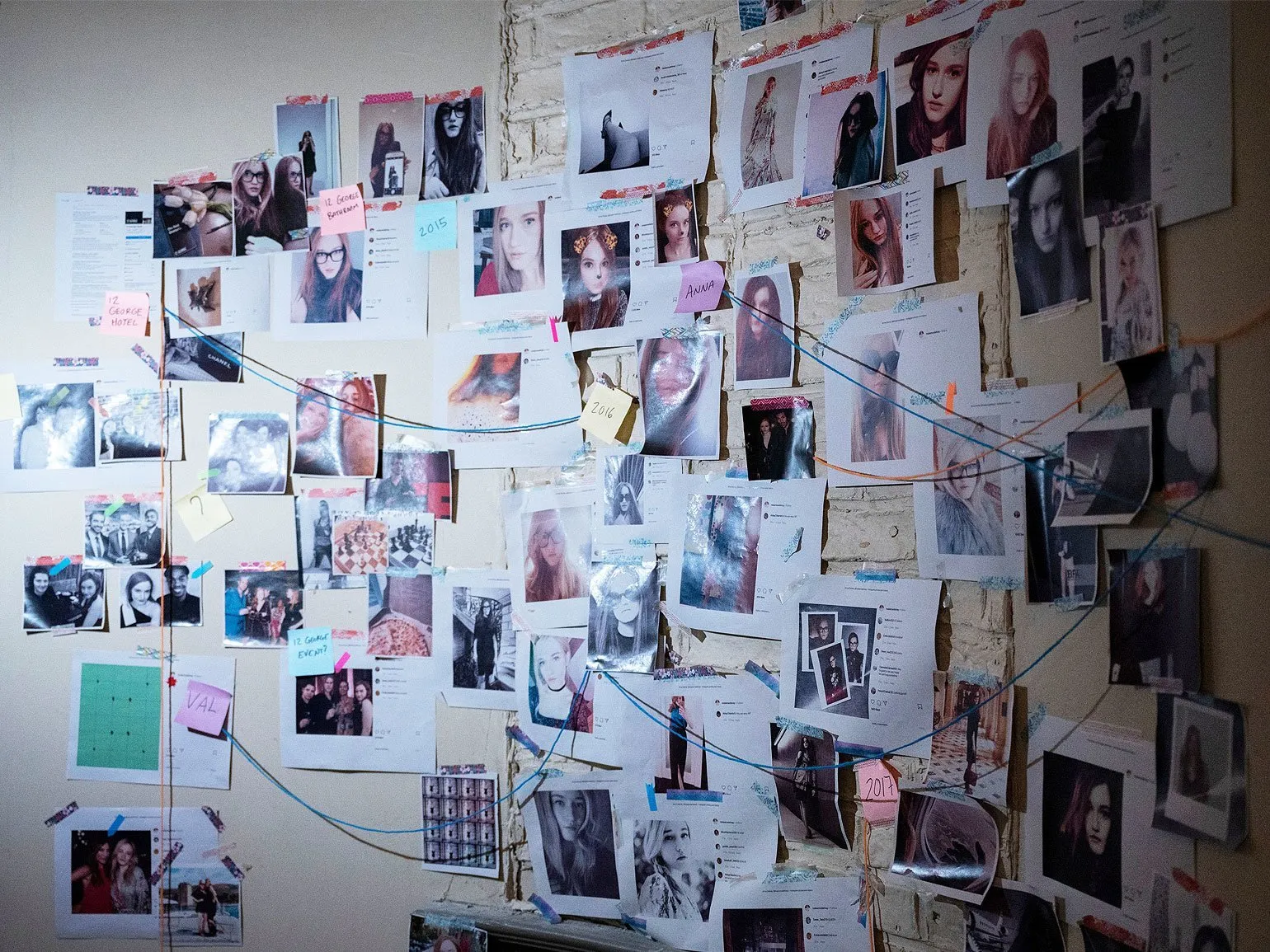 Героиня сериала «Изобретая Анну» собирала информацию для расследования на стене в своей комнате. Это иллюстрация фокусировки в дизайн-мышлении. Кадр: сериал «Изобретая Анну»