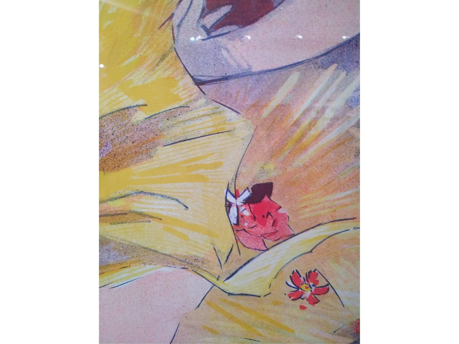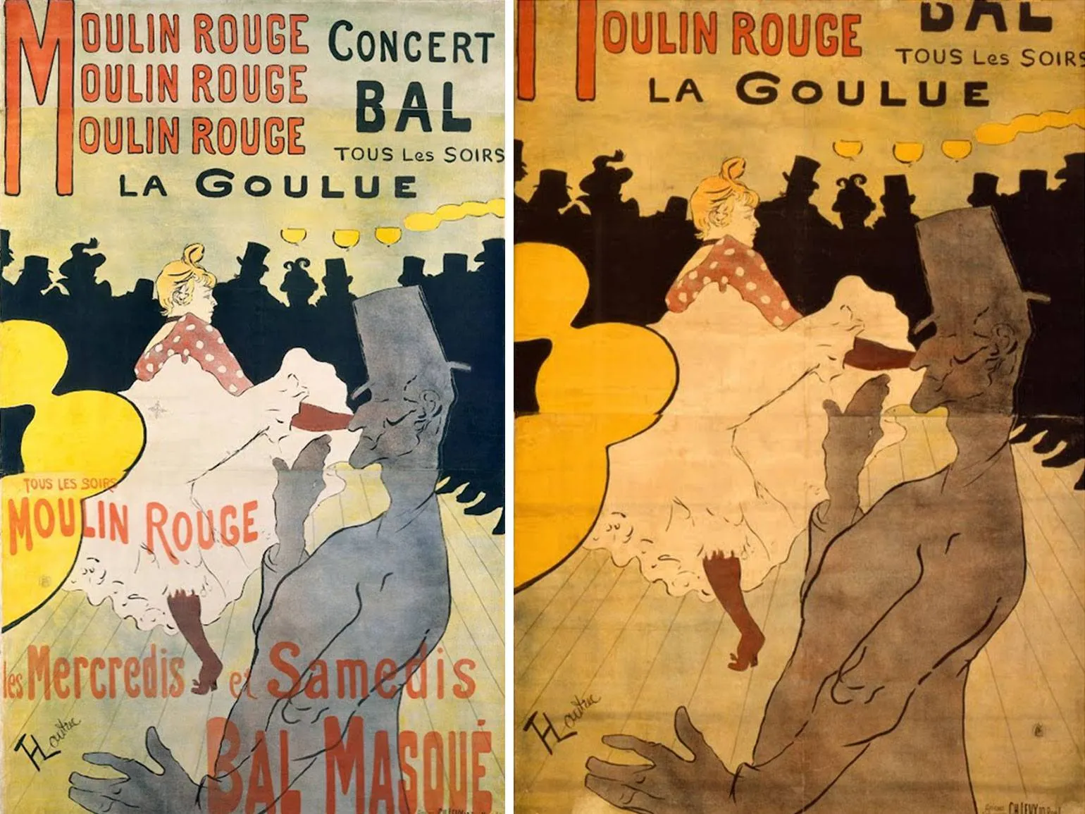 Осенью 1891 года была создана афиша для открытия кабаре «Мулен Руж». В ней смело и фотографично запечатлены планы: на первом плане танцор Валентин, известный под прозвищем Бескостный, позирует в динамичной позе. За ним выделяется яркая и детально проработанная фигура Ла Гулю, поднявшей белоснежные подъюбники. На заднем плане черной полосой представлена толпа посетителей, создающая атмосферу праздника и оживления. Эта афиша стала символом нового театрального искусства и привлекла внимание публики к уникальному месту, которое впоследствии стало культовым.