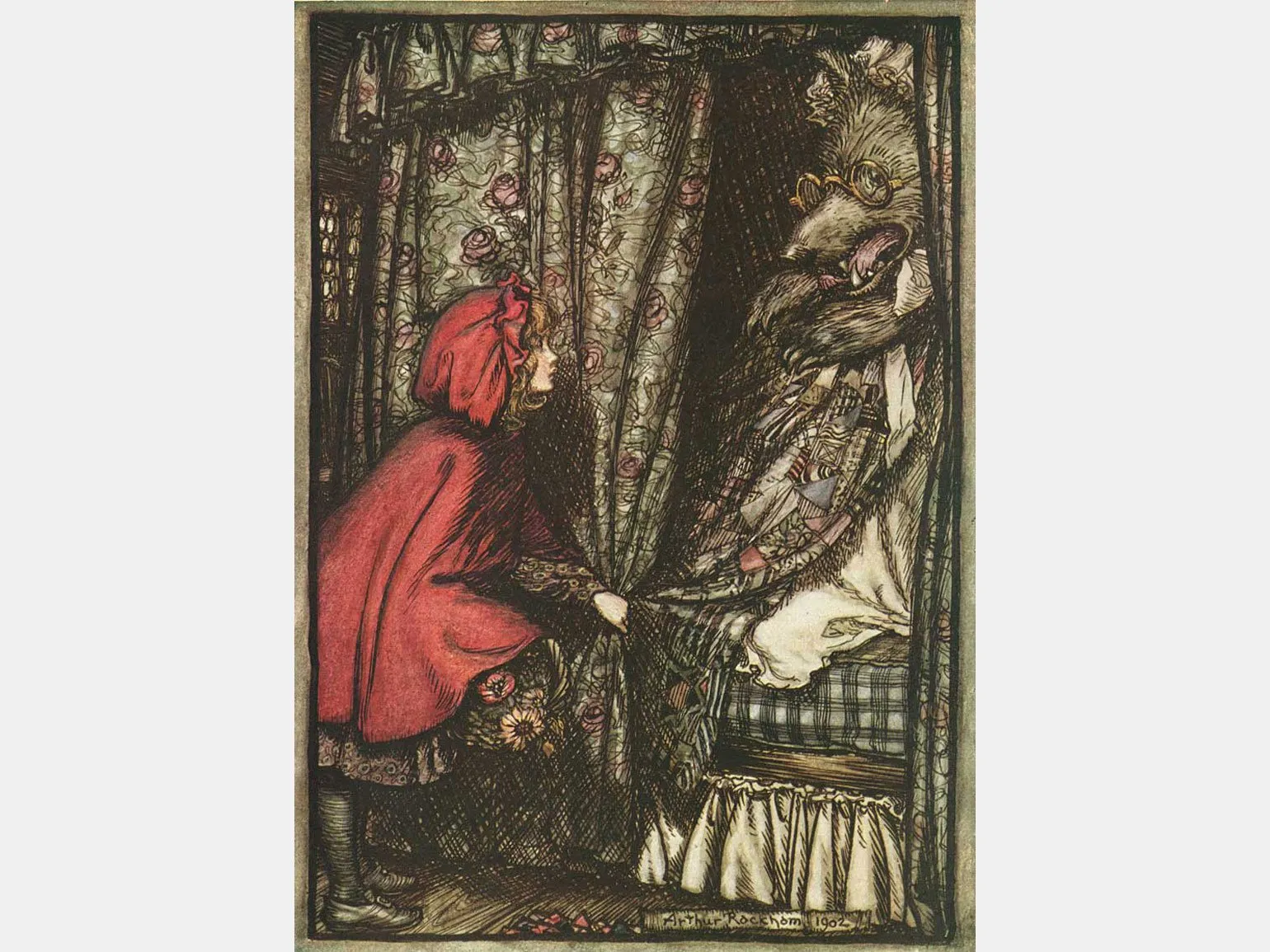 На протяжении веков сказка «Красная Шапочка» вдохновляла многих известных иллюстраторов. В 1909 году британский художник Артур Рэкхэм представил свои уникальные иллюстрации, используя технику туши и акварели. Его работы стали знаковыми, добавив новое измерение к восприятию этой классической истории. Влияние Рэкхэма на визуальное искусство продолжает ощущаться и сегодня, а его интерпретация «Красной Шапочки» остается одной из самых запоминающихся в мире иллюстрации.