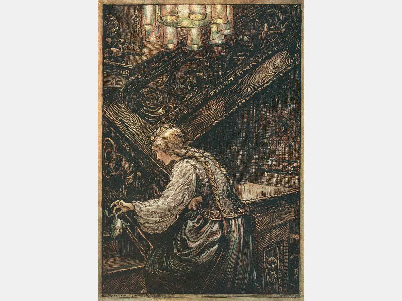 В конце XIX века к иллюстрации этой сказки обратился Артур Рэкхем, знаменитый своими выразительными монохромными изображениями. Его уникальный стиль привнес новое измерение в восприятие сюжета, сделав его более драматичным и увлекательным. Работы Рэкхема стали важной частью визуальной культуры того времени и продолжают вдохновлять художников и читателей по сей день. Его иллюстрации не только подчеркивают ключевые моменты сюжета, но и создают атмосферу, которая позволяет глубже понять эмоциональную составляющую сказки.