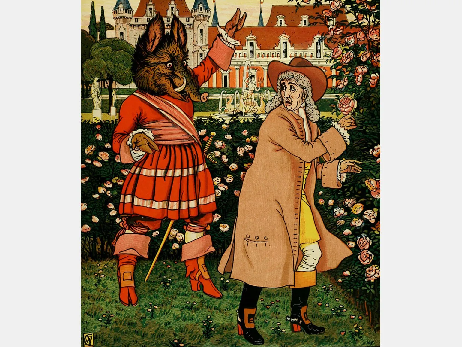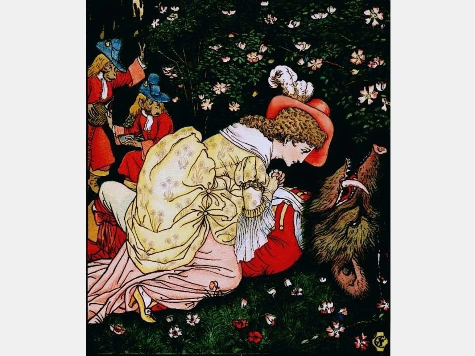 Одним из первых известных иллюстраторов сказок является Уолтер Крейн. В 1885 году он создал серию иллюстраций для этой знаменитой сказки. Крейн, обладая талантом живописца и архитектора, прославился своими яркими и детализированными работами, которые впоследствии стали классикой в мире иллюстрации. Его уникальный стиль и мастерство в передаче эмоций и сюжета сделали его работы незаменимыми в детской литературе.