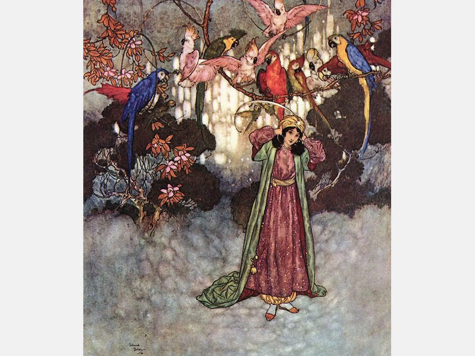 В 1909 году Артур Рэкхем создал иллюстрации к сказке, которые продолжают вдохновлять и восхищать зрителей. Его работы наполнены волшебной атмосферой, что отчетливо проявляется в знаменитых картинах. Рэкхем мастерски передал магию сказочного мира, что делает его иллюстрации актуальными и по сей день.