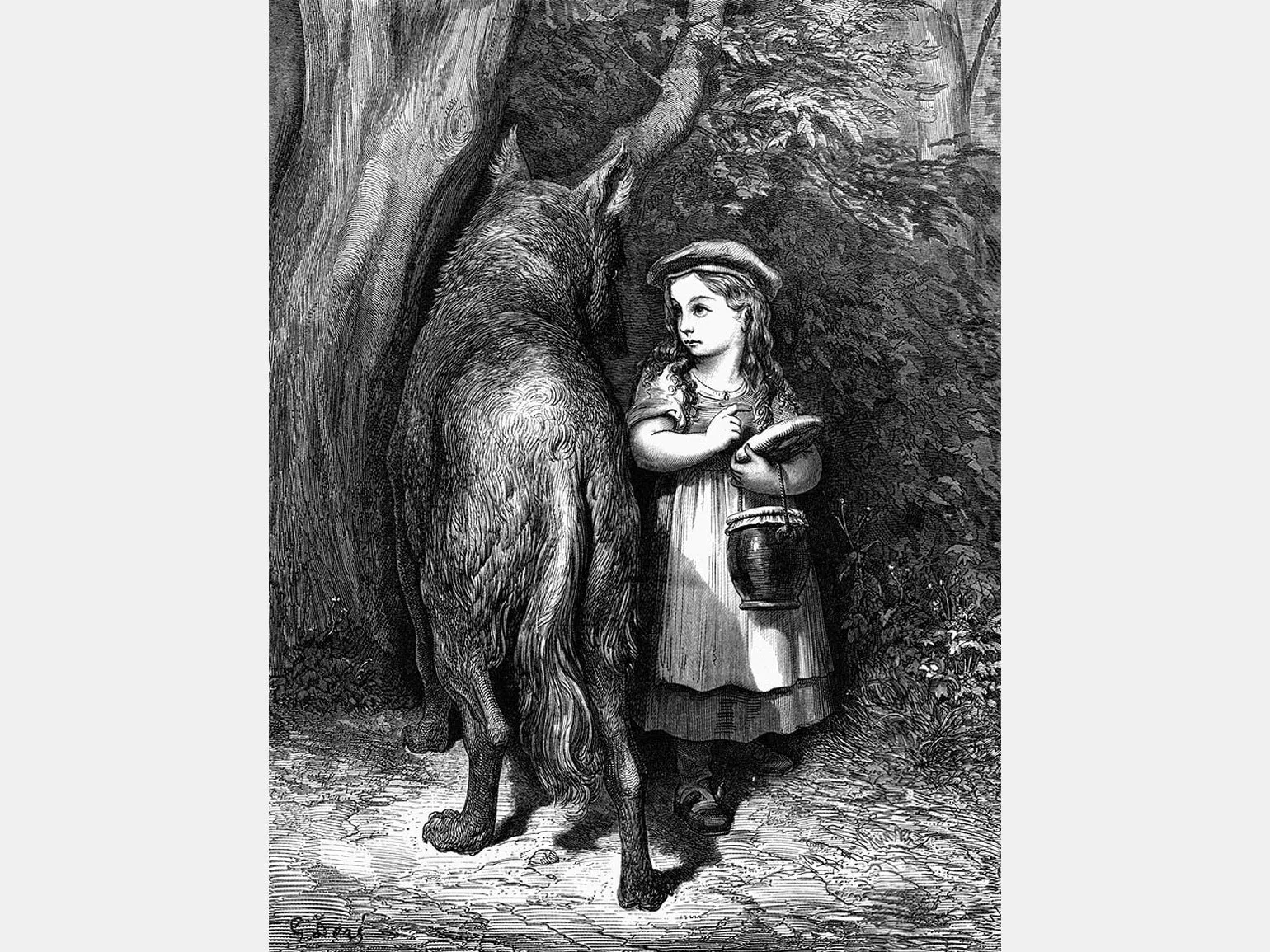 Первым значимым иллюстратором, создавшим серию изображений к различным сценам сказки, стал французский художник Гюстав Доре. Его работы, выполненные в технике ксилографии, принесли ему международную известность. В 1862 году было опубликовано первое иллюстрированное издание «Красной Шапочки», которое стало настоящим шедевром в мире иллюстрации. Доре смог передать атмосферу и эмоции сказки через свои детализированные и выразительные изображения, что сделало его работы востребованными и признанными на протяжении многих лет.