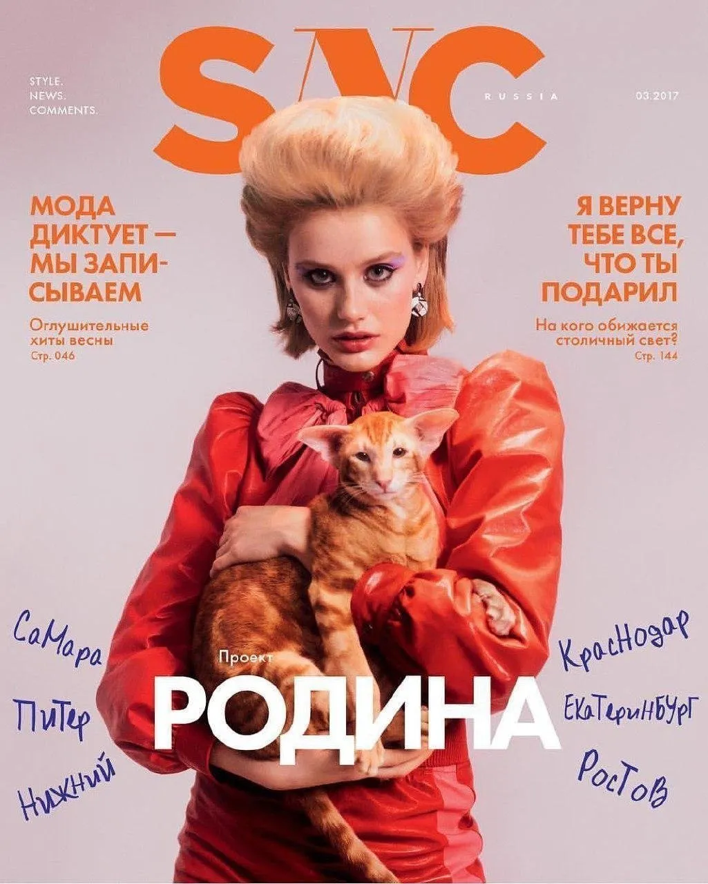 Фотография на обложке, на которой я провела ретушь кота, в то время как модель осталась без изменений.