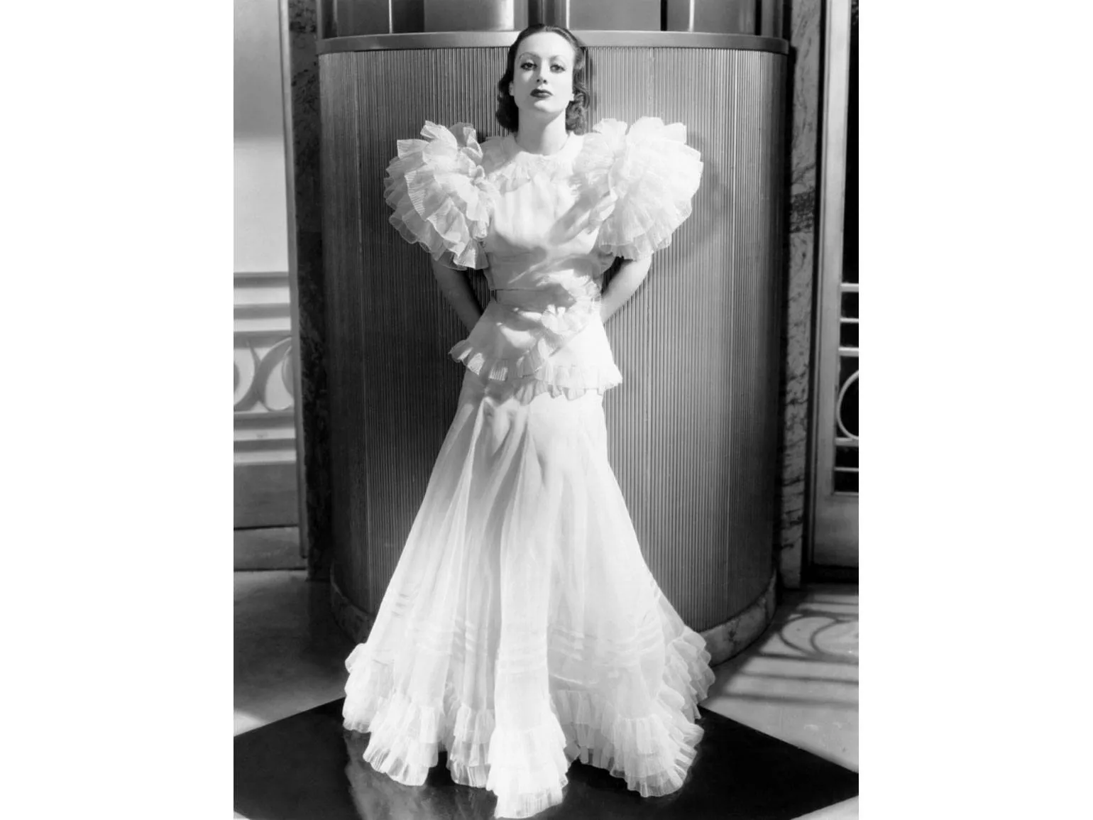 Стиль с объемными плечами стал популярным благодаря известному голливудскому костюмеру Адриану Гринбергу, более известному как Адриан. Он создал знаменитое платье для актрисы Джоан Кроуфорд, которое стало иконой моды и положило начало тренду на подобные силуэты. Этот уникальный дизайн оказал значительное влияние на женскую моду, сделав объемные плечи символом элегантности и силы.