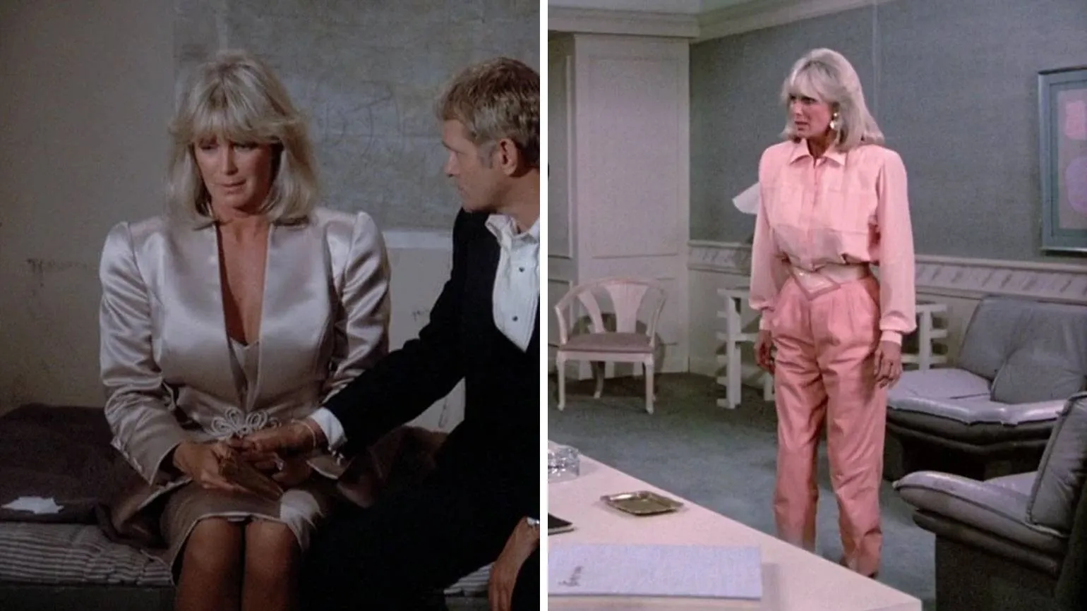 Ключевым фильмом середины 1980-х годов является эротическая мелодрама «Девять с половиной недель». В этом фильме ярко демонстрируется трансформация стиля героини, сыгранной Ким Бейсингер, по мере её сближения с персонажем Микки Рурка, крупным бизнесменом. Она переходит от светлых, мягких оттенков к тёмному офисному костюму с жёстким силуэтом, что символизирует изменения в её жизни и отношениях. Эта эволюция образа подчеркивает не только развитие персонажа, но и общую атмосферу фильма, ставшего знаковым для своего времени.