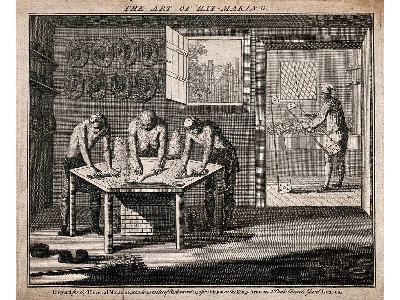 В английском языке существует выражение «безумный как шляпник» (mad as a hatter), которое связано с образом Болванщика из сказки Льюиса Кэрролла «Алиса в Стране чудес». Это название не случайно, поскольку в XIX веке шляпники действительно часто страдали от психических расстройств. Причиной этого явления было вдыхание паров ртути, используемой в процессе производства фетровых шляп. Симптомами поражения мозга были сильные подёргивания, расстройства, спутанная речь и искажение зрения. Таким образом, образ шляпника стал символом безумия, что подчеркивает опасные последствия воздействия токсичных веществ на здоровье человека.