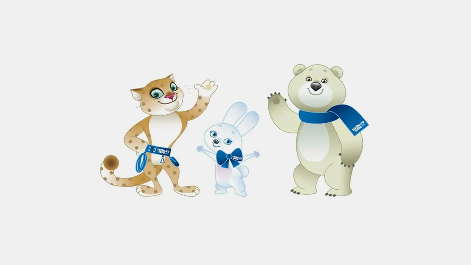 Маскоты Олимпиады в Сочи — тигр, заяц и медведь. Эти персонажи использовались как совместно, так и по отдельности. Изображение: Олимпийские игры