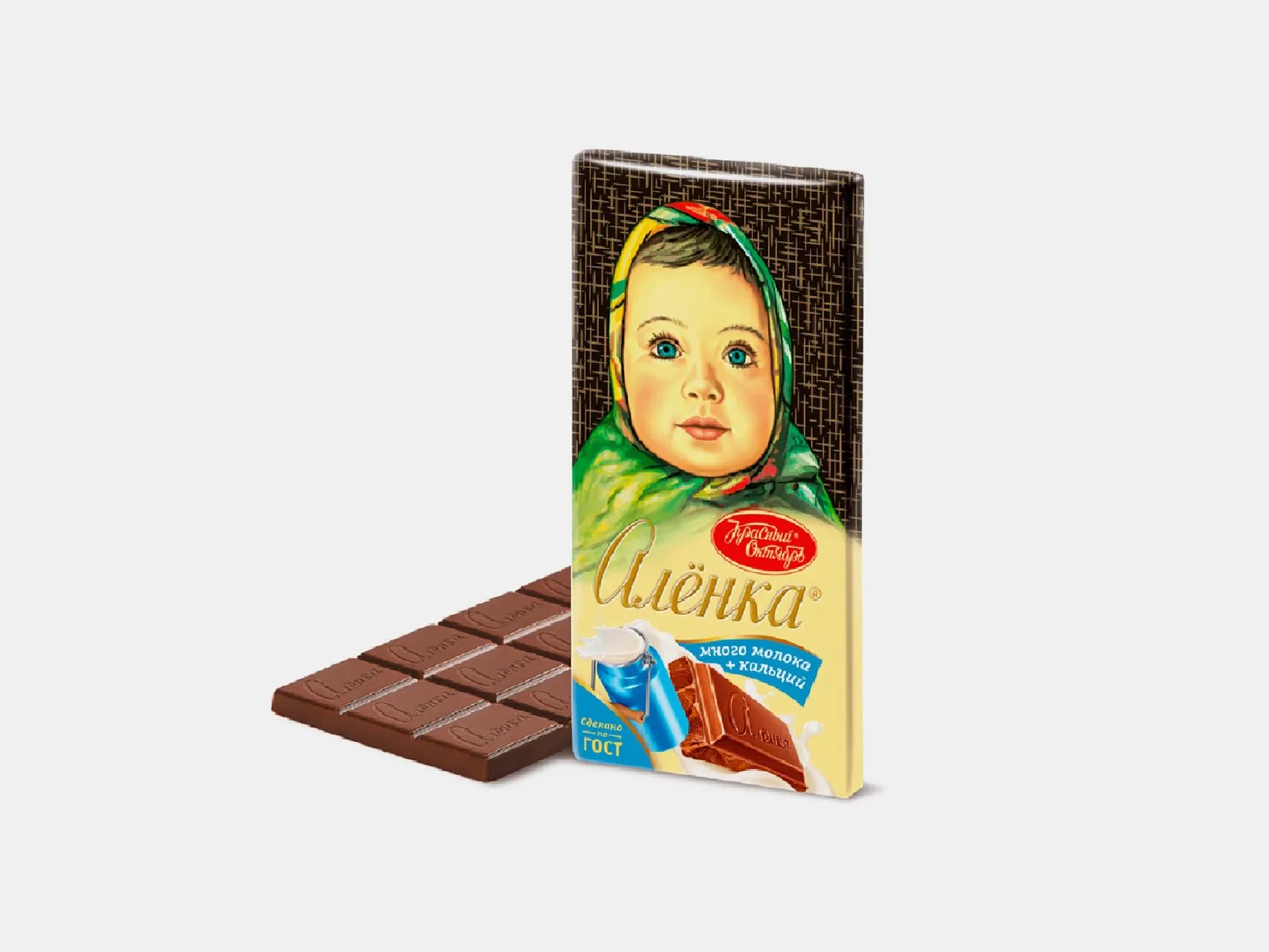 На упаковке шоколада изображена девочка, однако это не маскот, а статичная фирменная иллюстрация. Она воспринимается потребителями исключительно в таком виде. Изображение: «Алёнка».