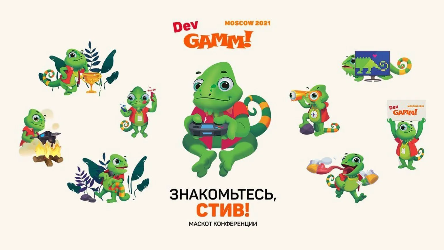 Маскот конференции разработчиков игр: проработка градиентов приближает стилистику изображений к 3D. Изображение: DevGAMM