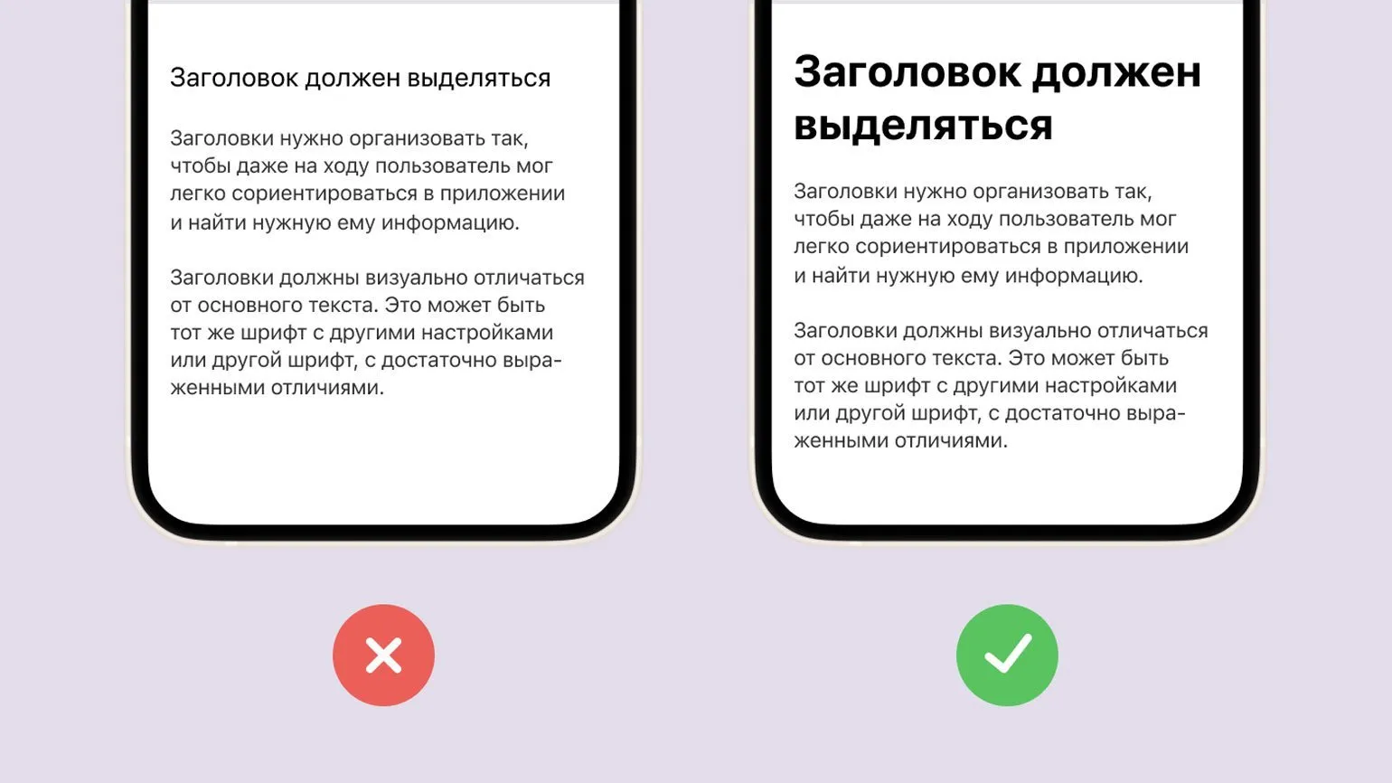 • Основные заголовки — ключевая информация, которая должна быть на первом плане.