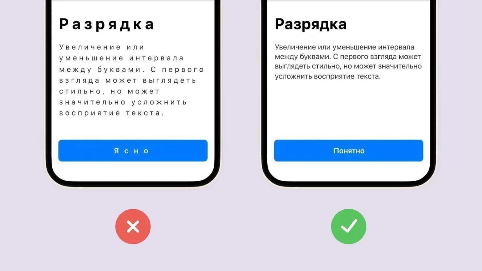 Избегайте чрезмерной разряжки текста, написанного строчными буквами. Например, использование такого формата, как ‘П р о с т о п о т о м у ч т о э т о н е у д о б н о ч и т а т ь’, усложняет восприятие информации. Качественные шрифты уже имеют оптимально подобранную разрядку, и вмешательство в этот процесс может негативно сказаться на читаемости. Правильное оформление текста способствует лучшему восприятию и пониманию содержания, что является важным аспектом для создания удобочитаемых материалов.