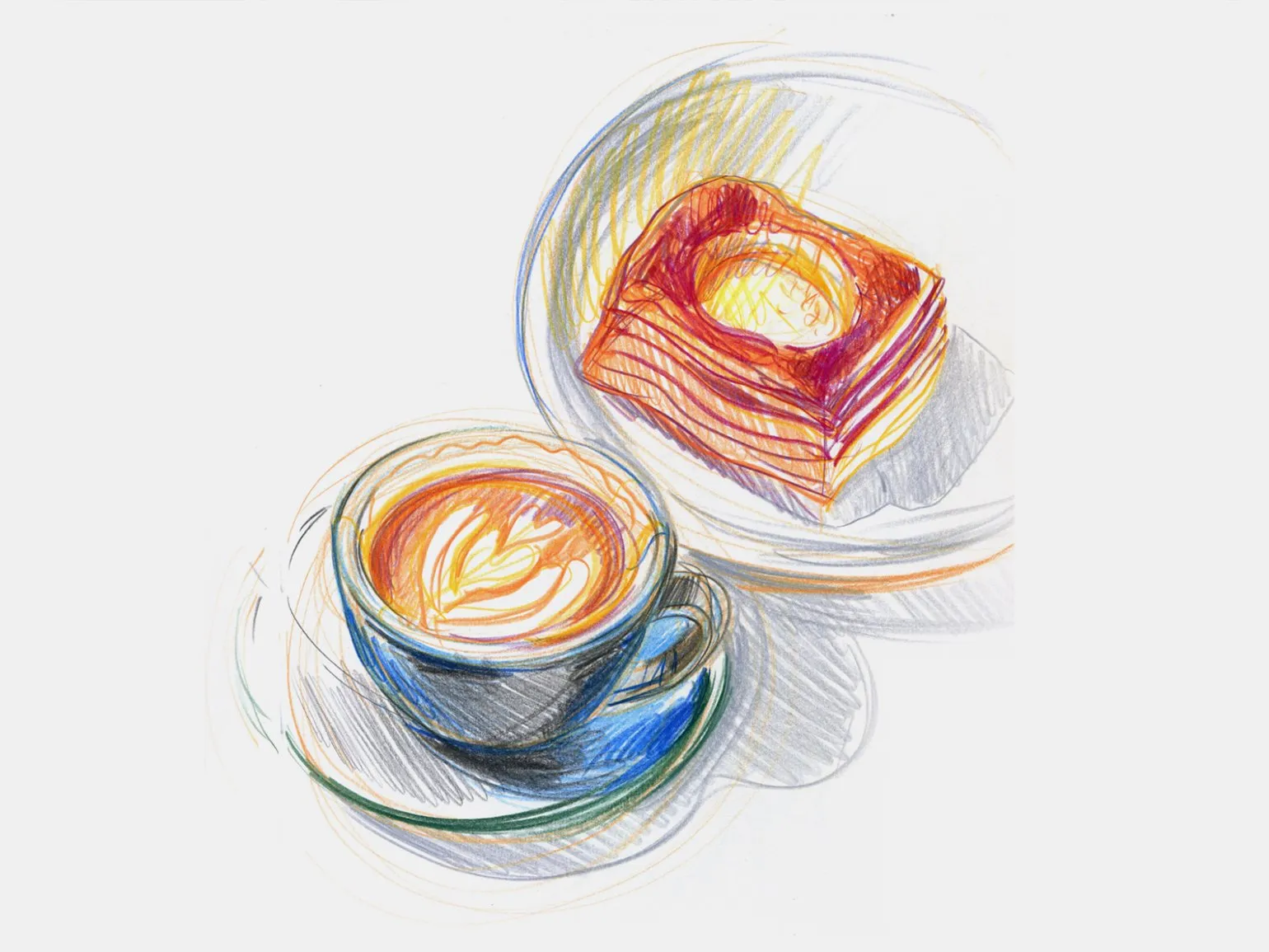 - Скетч-натюрморты. В эту категорию входят зарисовки еды и других объектов, создающих гармоничные композиции.