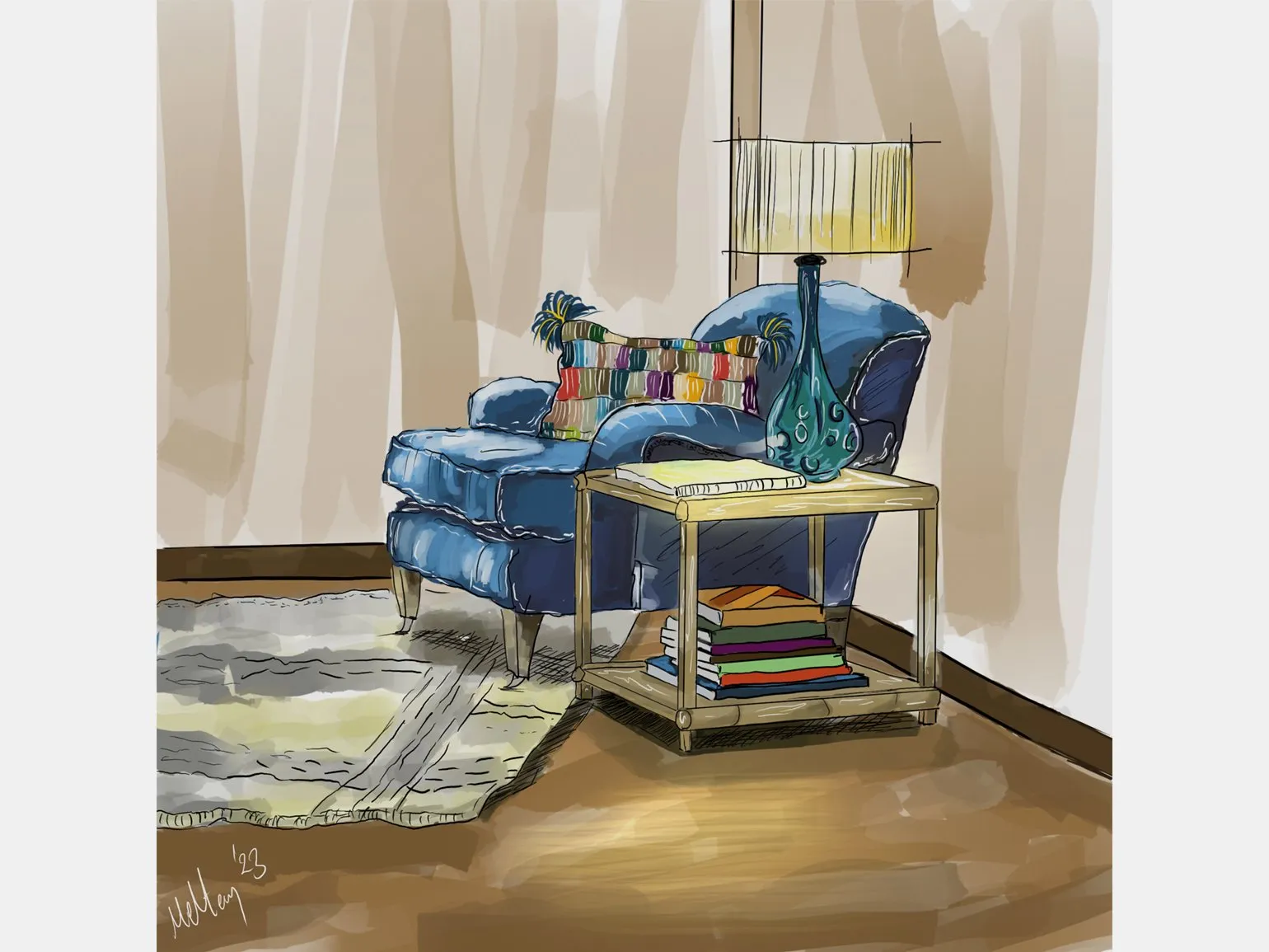 - Интерьерный скетчинг. Дизайнеры с помощью эскизов демонстрируют свои идеи по оформлению интерьеров, передавая атмосферу пространства более естественно, чем в рендерных изображениях.