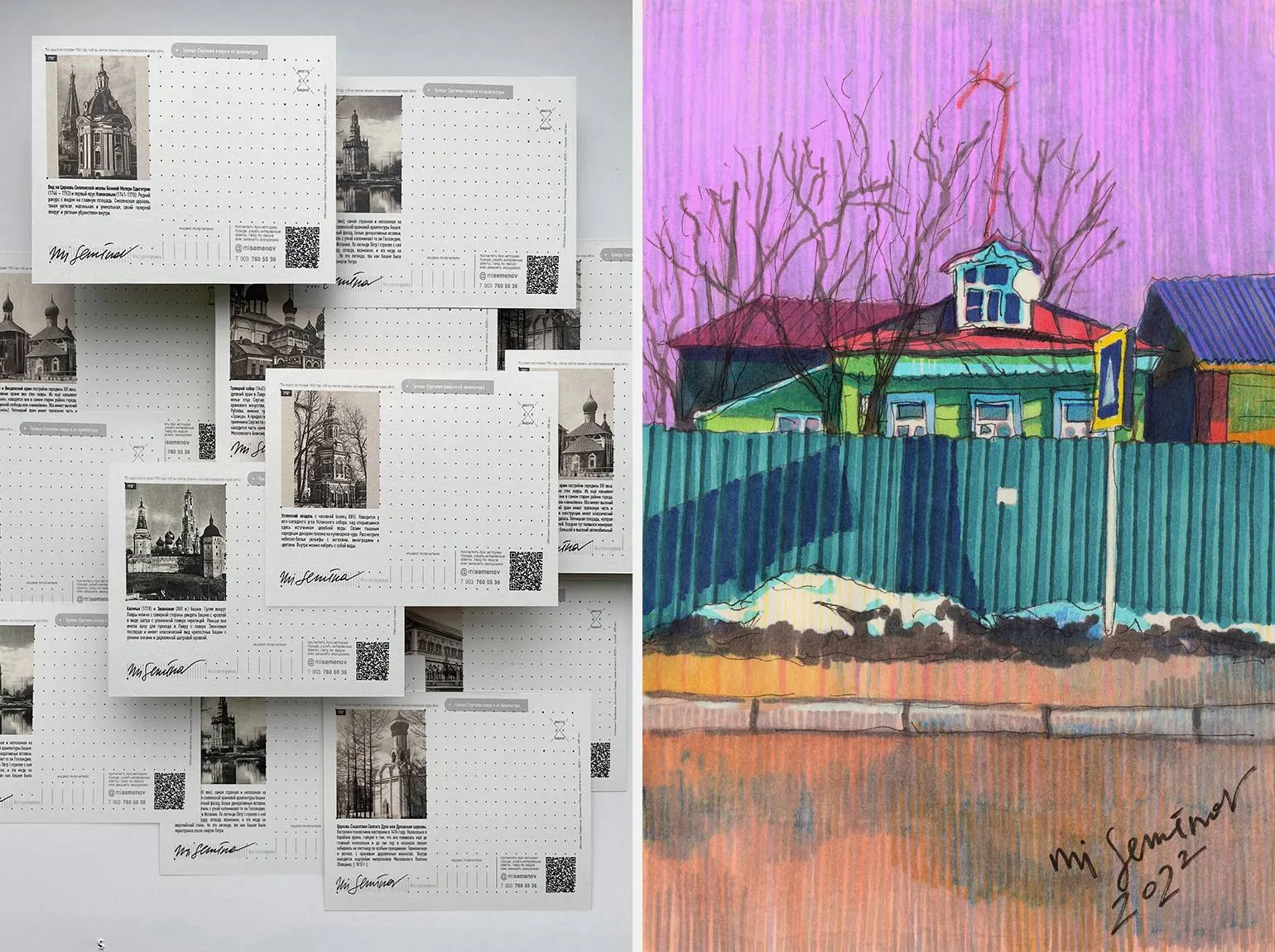 На лицевой стороне открыток представлены знаковые достопримечательности нашего региона, а на обратной стороне размещены подробные сведения о каждой из них, включая QR-код, который ведет к интересным историям. В настоящее время мои открытки доступны в местных магазинах и кафе. Более того, приятно осознавать, что другие художники вдохновились моим примером и начали создавать оригинальные сувениры, что способствует развитию культурного обмена и поддерживает местное искусство.