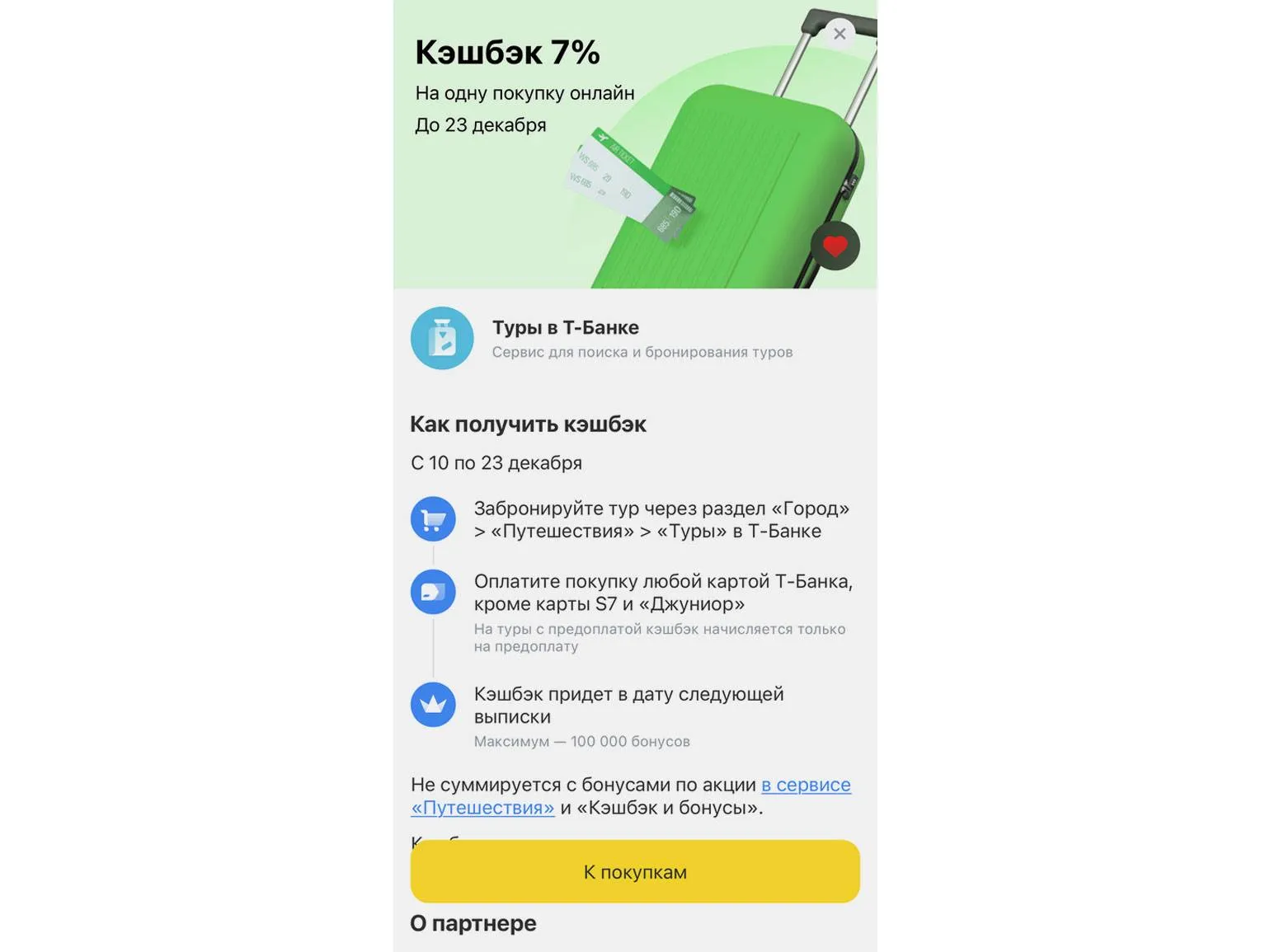 Альтернативный вариант — покупка туристических туров. Бывают случаи, когда не возникает желания общаться с туроператором. Если банк предлагает такую услугу, я предпочту воспользоваться ею, так как уверена в наличии поддержки в случае возникновения проблем. Дополнительным плюсом станет начисление кешбэка, что всегда приятно. Если рассматривать это с точки зрения girl math, такие деньги воспринимаются как будто заработанные.