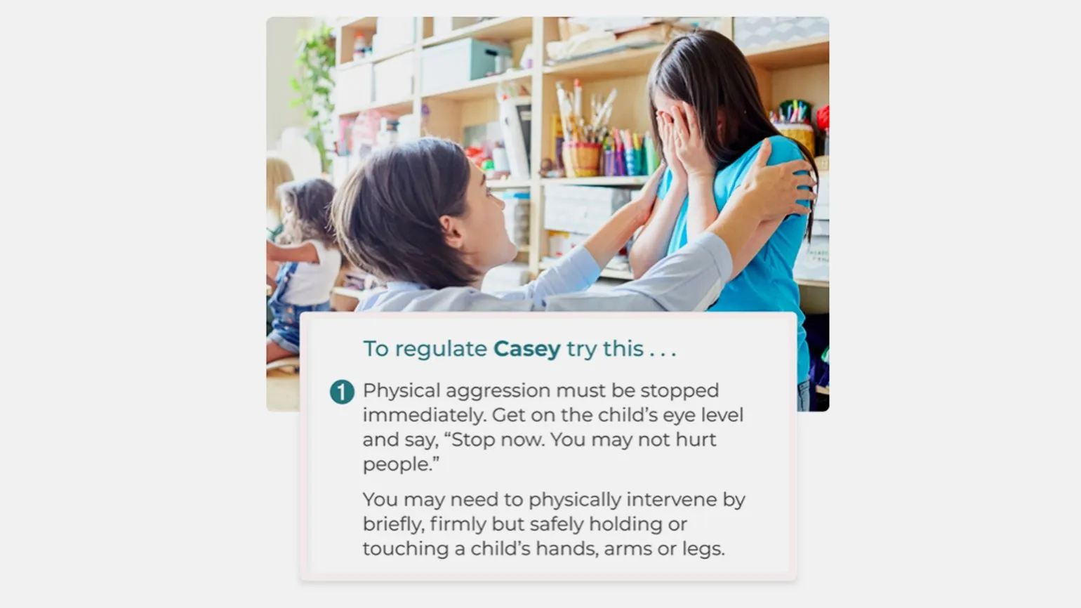 На представленном скриншоте можно увидеть фрагмент опросника Noni, в котором приложение запрашивает у учителя информацию о поведении ученика. В разделе, посвященном физической агрессии, программа предлагает указать, на кого именно она была направлена — на другого ребенка или взрослого. Второй скриншот демонстрирует рекомендации программы по предотвращению подобных действий.