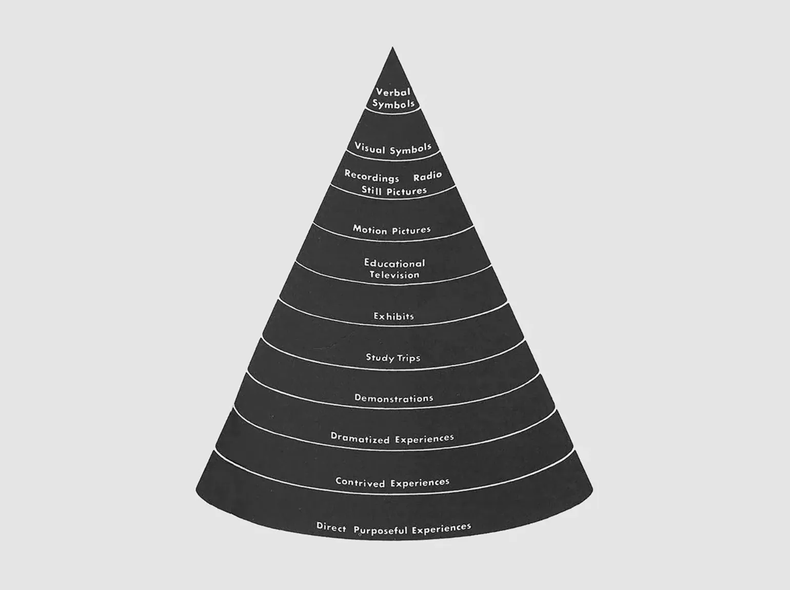 В середине XX века педагог Эдгар Дейл разработал концепцию «конуса опыта», впервые представленную в его книге «Аудиовизуальные методы обучения», опубликованной в 1954 году и обновлённой в 1960-х. Лесли Бриггс отмечал, что конус опыта является одним из самых эффективных инструментов для выбора формата обучения. Со временем этот метод стал известен как «пирамида Дейла», что привело к его неправильной интерпретации. Концепция Дейла остаётся актуальной для педагогов, стремящихся оптимизировать процесс обучения и выбрать наиболее подходящие методы для передачи знаний.