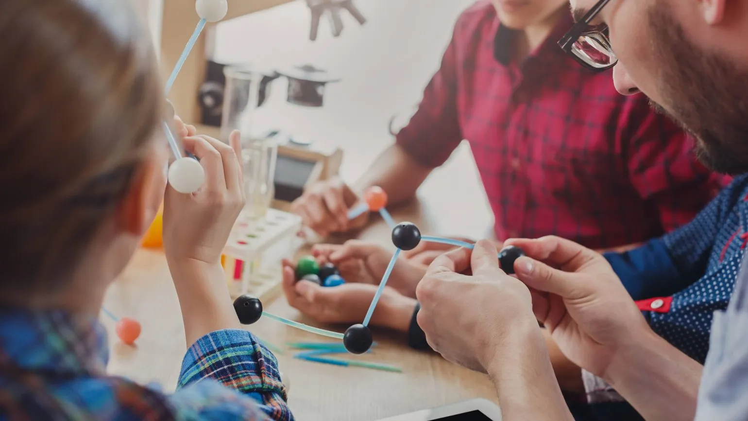 Второй компонент включает тактильные манипуляции. Для этого разработан физический обучающий набор, на конструкциях которого имеются пометки шрифтом Брайля. С его помощью пользователи могут на ощупь изучать атомы в модели молекулы и изменять их расположение в соответствии с инструкциями аудиопомощника. Такой подход способствует более глубокому пониманию структурной химии и развивает навыки работы с тактильной информацией.