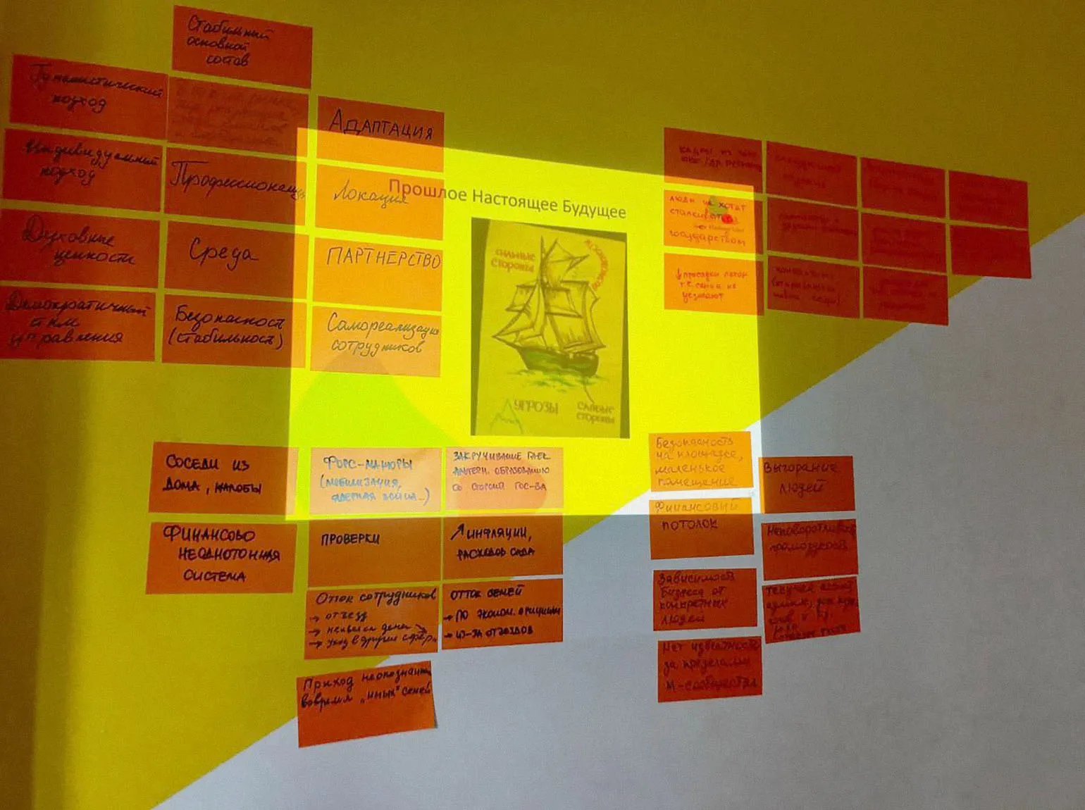 • свободная фасилитация на основе озвученных на индивидуальных встречах запросов команды и собственника.