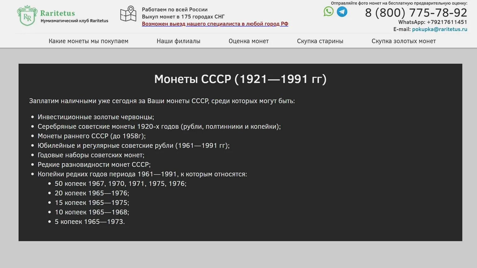 Спрос на обычные монеты, известные как ходячка, остается высоким. Нумизматический портал Raritetus активно скупает юбилейные и регулярные советские рубли как раннего, так и позднего периода. В каталоге сайта можно узнать ориентировочную стоимость монет на сегодняшний день, основываясь на актуальных данных с аукционов. Также существует возможность отправить фотографию монеты для профессиональной оценки экспертами портала.