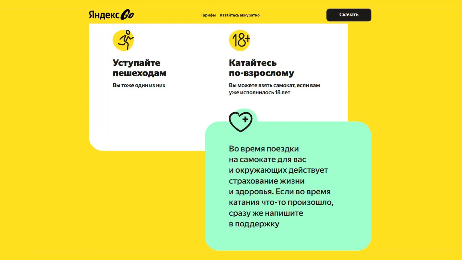 Сервис «Яндекс Go» разрешает брать в аренду электросамокаты только с 18 летСкриншот: «Яндекс Go» / Skillbox Media