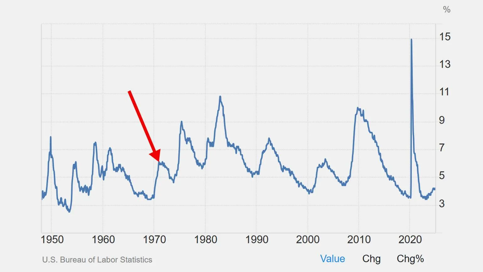 Правительство США стремилось снизить уровень безработицы и инфляции, применяя меры, такие как замораживание цен на потребительские товары и девальвация доллара. Однако эти действия только усугубили существующие проблемы. Высокий спрос и растущие цены заставили компании увеличивать численность сотрудников для повышения объемов производства. В целях привлечения работников бизнес начал повышать заработные платы, что способствовало увеличению потребительских расходов. В результате снова наблюдался рост инфляции.