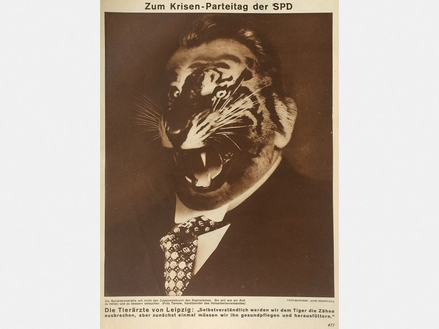 До 1933 года политика коммунистов в отношении нацистов и немецких социал-демократов была неясной и произвольной. В 1928 году, после падения Бухарина и под давлением Сталина, Коминтерн стал называть всех социал-демократов «социал-фашистами». В 1931 году художник Хартфилд создал карикатуру, на которой лидер Социал-демократической партии Германии изображён с мордой оскалившегося тигра. Этот подход подчеркивает конфликт между коммунистами и социал-демократами, который существенно повлиял на политическую ситуацию в Германии того времени.