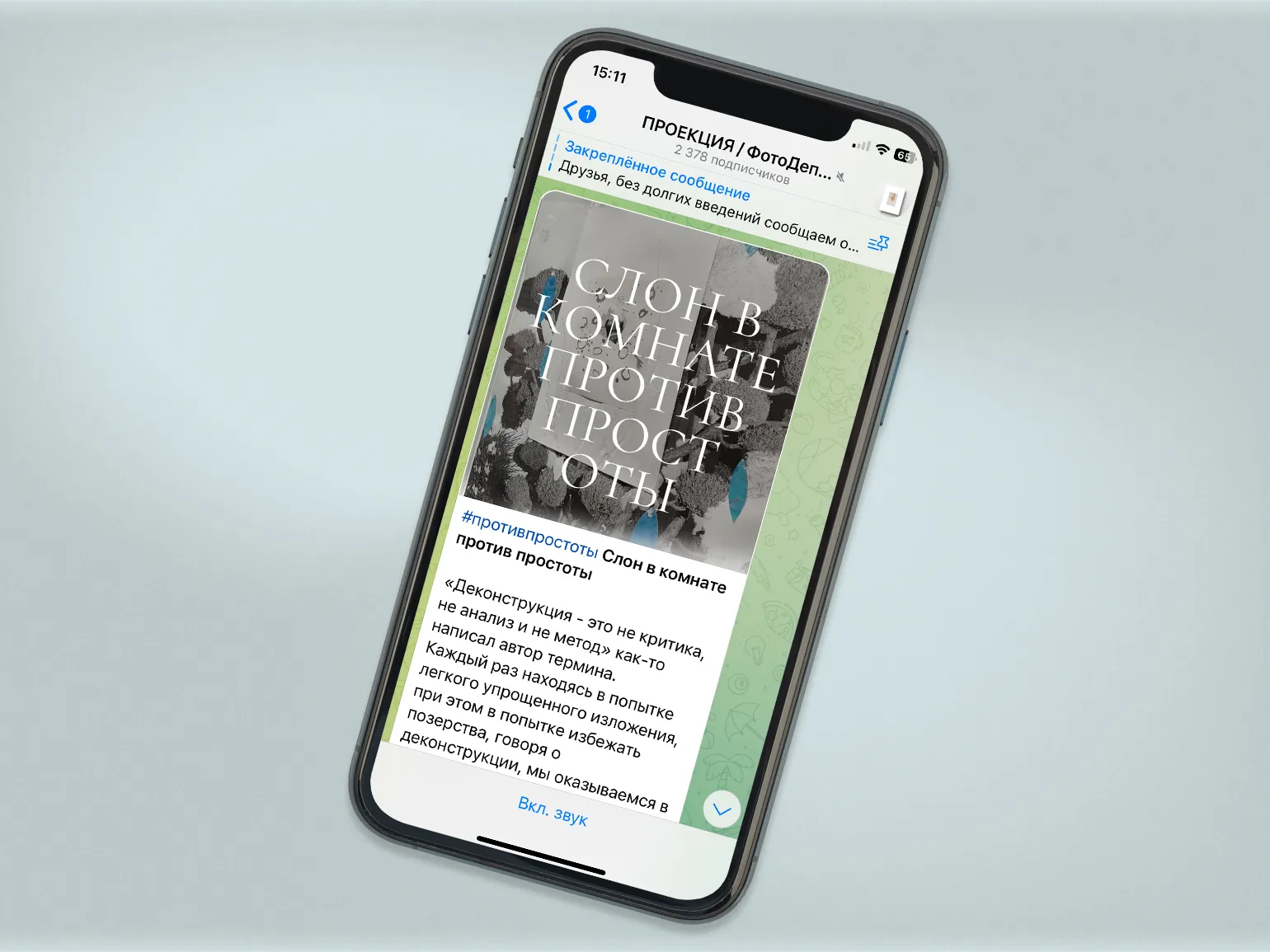 Образовательная платформа «Проекция» и институция «ФотоДепартамент» являются ведущими учреждениями в области теории концептуальной фотографии и рефлексивного погружения. Их телеграм-канал посвящен глубокому анализу смыслов, связанных с фотографией и современным искусством. Здесь обсуждаются идеи нового мира и инновационной индустрии изображений, а также художественное мышление и связь искусства с окружающей реальностью. Платформа предоставляет уникальную возможность для изучения концептуальной фотографии и формирует сообщество, стремящееся к осмыслению современности через визуальное искусство.