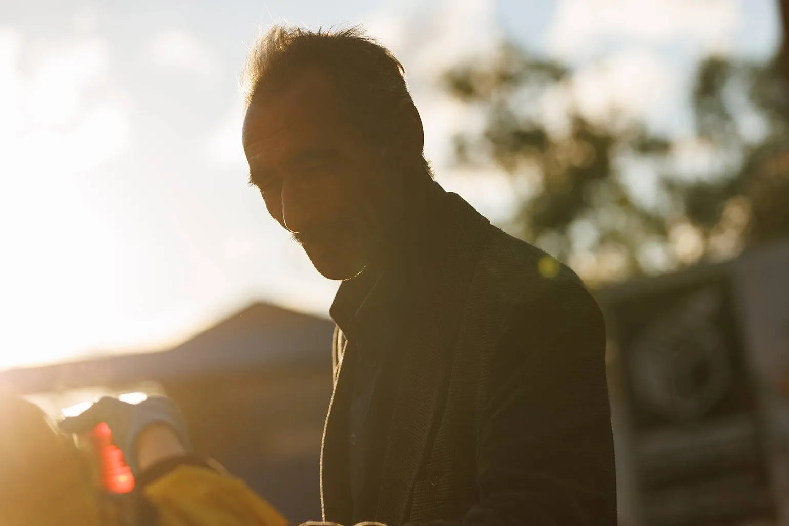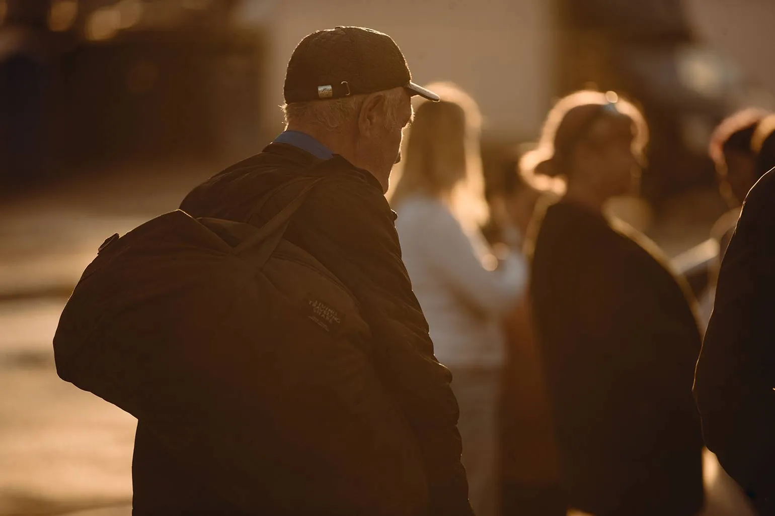 Фотография, использованная на баннере, снята в контровом свете, который мне особенно нравится. Автобус «Ночлежки» прибывает вечером на Площадь трёх вокзалов. Летним вечером в это время солнце начинает садиться, создавая классический золотой час. В кадре возникает интересный контраст между обычным героем и красивым золотым светом. На снимке изображён пожилой человек в кепке с рюкзаком, который направляется куда-то. Мы не знаем, ждёт ли он электричку, чтобы поехать на дачу, или намерен переночевать в автобусе, а его рюкзак содержит все его вещи. Эта универсальность образа героя помогает сократить дистанцию между ним и зрителем. Существует стереотип о бездомных как о людях, которые выглядят неопрятно и часто находятся в состоянии алкогольного опьянения. Однако это далеко от истины. В сложных жизненных обстоятельствах может оказаться любой человек, который стоит рядом с вами на остановке и не выдаёт своего положения.