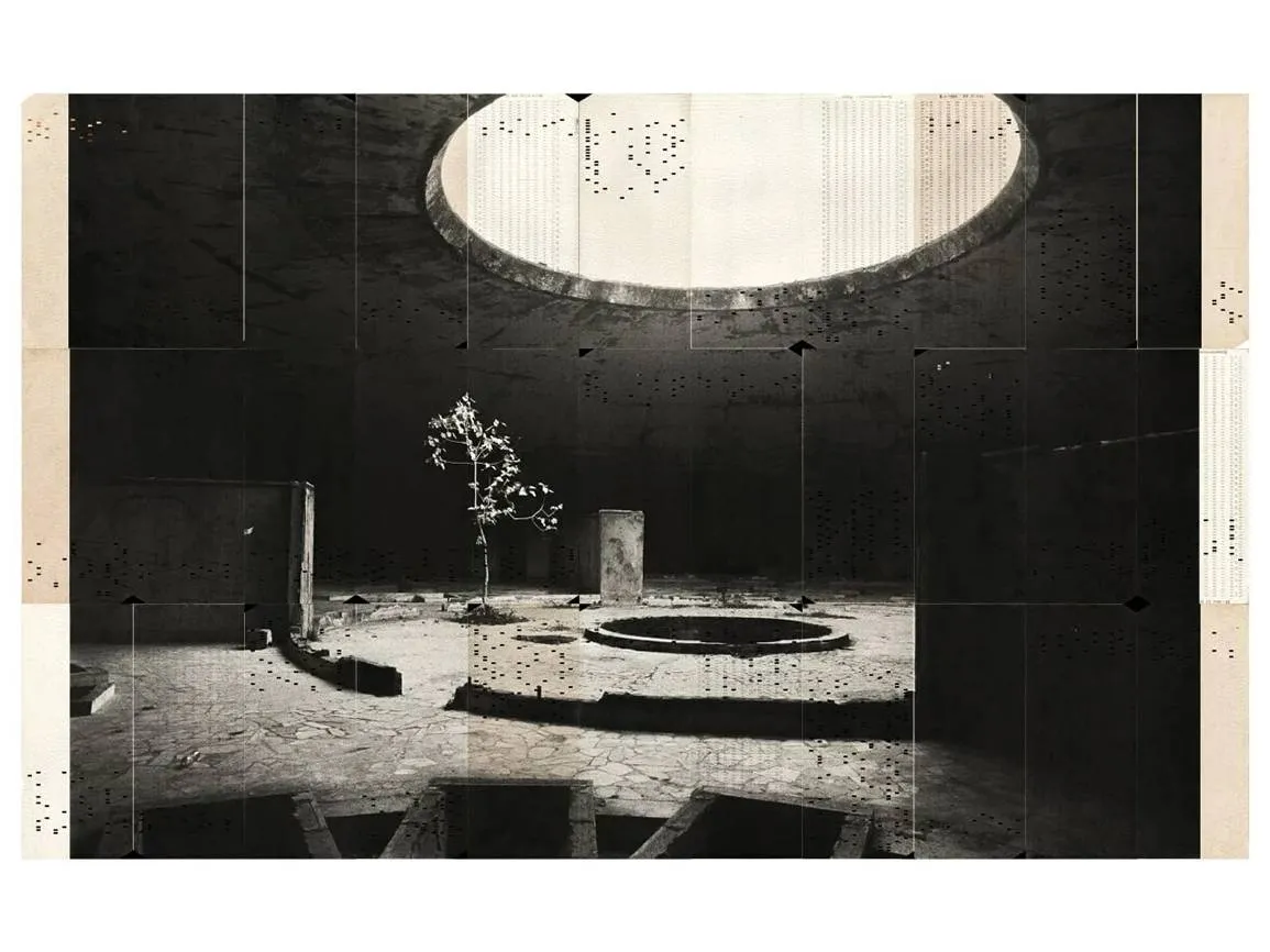 Memories of Future XII. Заброшенный радоновый источник эпохи СССР, Центральный Кавказ, 2019. Печать на найденной бумаге — перфокартах из нарушенной группы неизвестной программы вычислений для ЭВМ и табулятора. Астраханский Университет, СССР 1980-хФото: Виталий Северов / FotoDepartament.Gallery