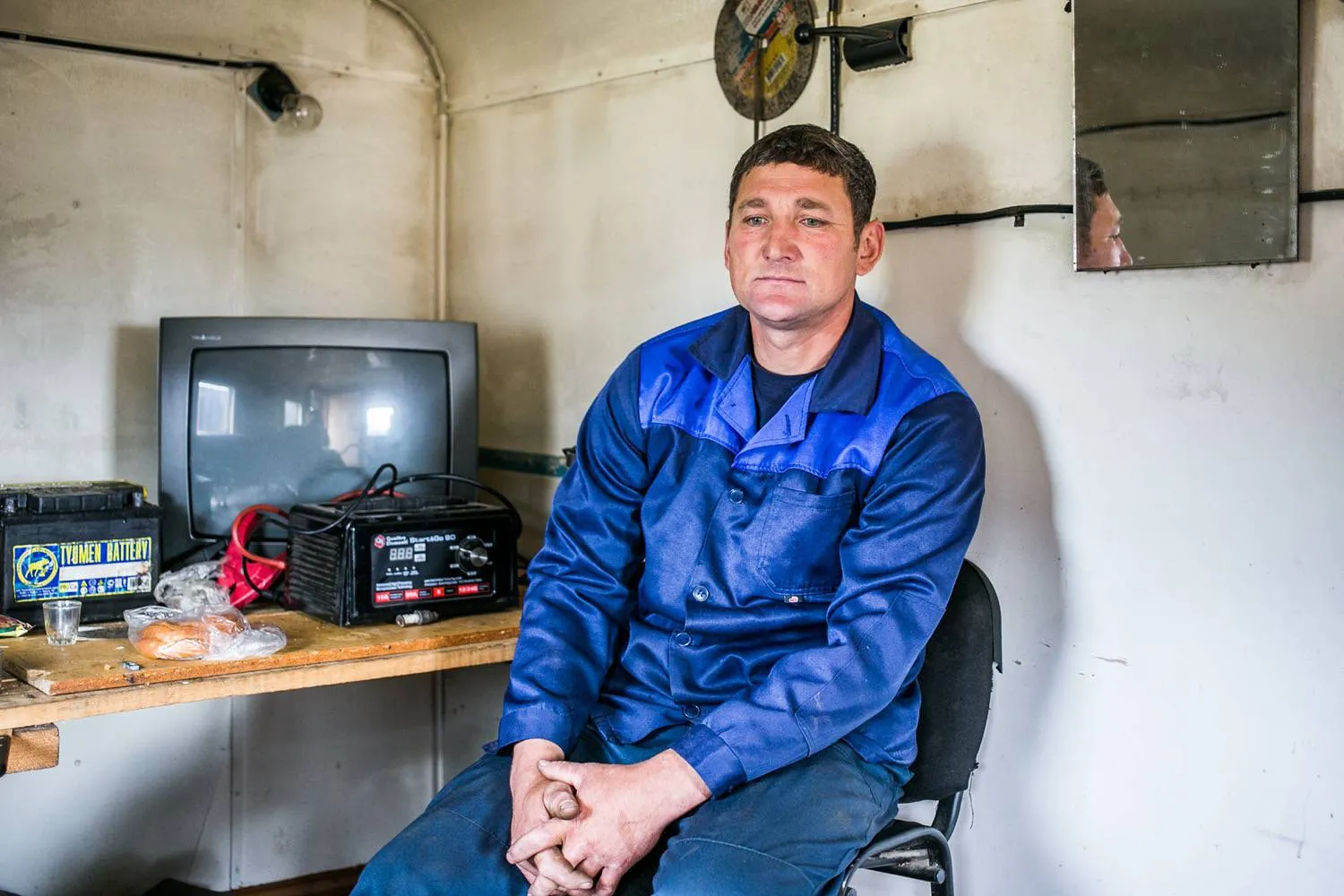 Мы вошли во двор, который оказался большой мастерской, заполненной инструментами и различным хламом. Два мужчины занимались сваркой огромной железной конструкции. К ним присоединились еще двое молодых людей, явно страдающих от похмелья. Я немного побродил по мастерской, понимая, что снимать здесь нечего, а разговаривать не о чем. Уже собирался уходить, как вдруг дядя Вова сказал: «Антоха, пойдем в вагончик, попьем чай». Меня настораживала атмосфера — я ощущал себя инородным элементом, объектом интереса из-за моего фотоаппарата. Тем не менее, я решил согласиться.