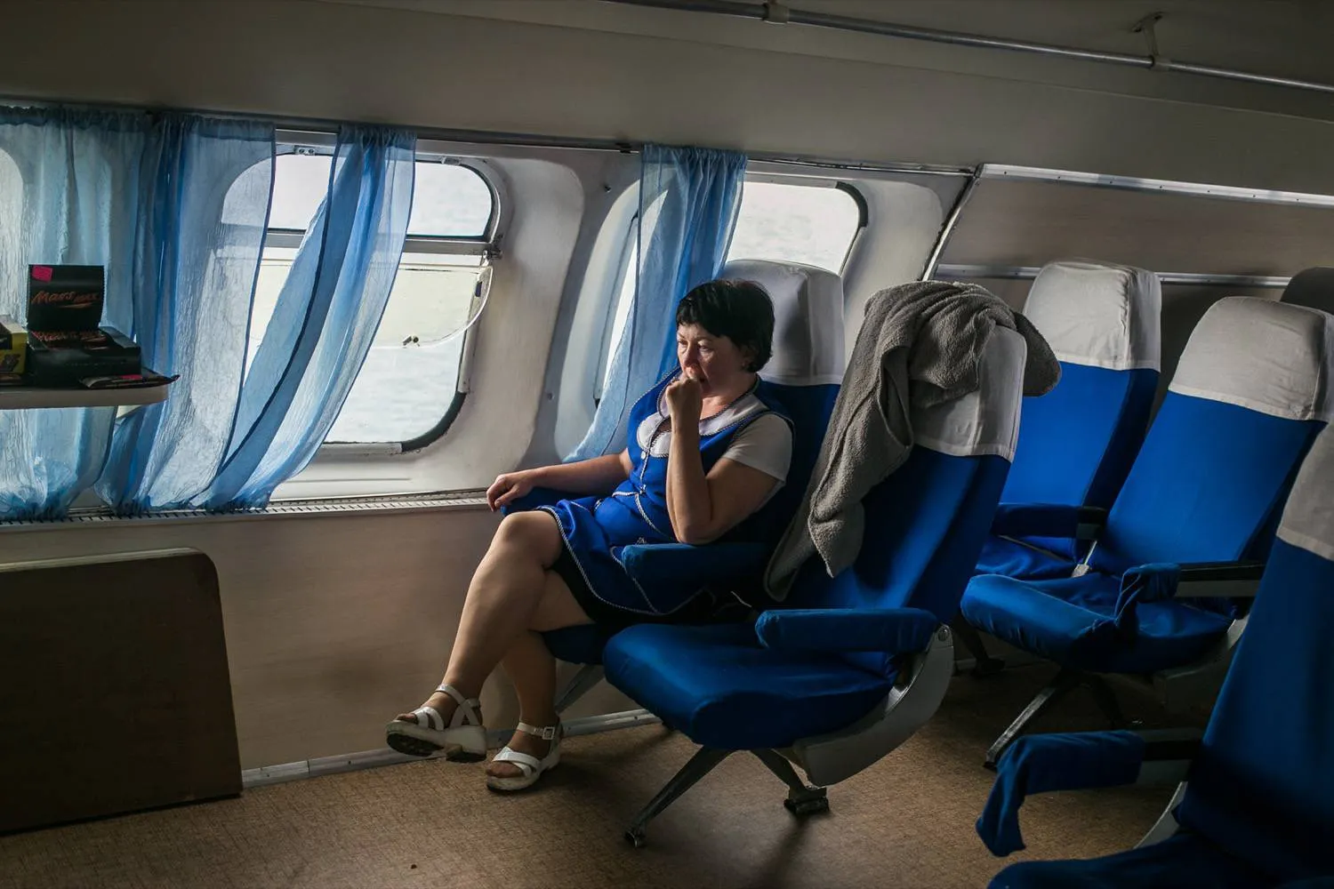 Фотография, сделанная без разрешения, запечатлела момент, который навсегда останется в памяти. Снимок был сделан на теплоходе, который раньше осуществлял рейсы по Байкалу, но теперь этот маршрут закрыт. Мы с семьёй наслаждались путешествием, когда на фото попала работница теплохода, предлагающая гостям шоколадки и газировку. В её выражении лица отражается типичное состояние местного жителя Байкала — внутренний конфликт между востребованностью региона и личной невостребованностью. Раньше жители занимались рыбной ловлей и охотой, но с введением запретов эти занятия стали невозможными. Теперь единственным источником дохода остается туризм, который не всегда воспринимается положительно местными жителями. Для традиционного деревенского человека мысль о сервисе и обслуживании туристов может быть непривлекательной. Именно этот внутренний конфликт я увидел в её взгляде. Она не заметила, как я её сфотографировал, а я унес с собой целую историю о жизни на Байкале и о переменах, которые затронули его жителей.