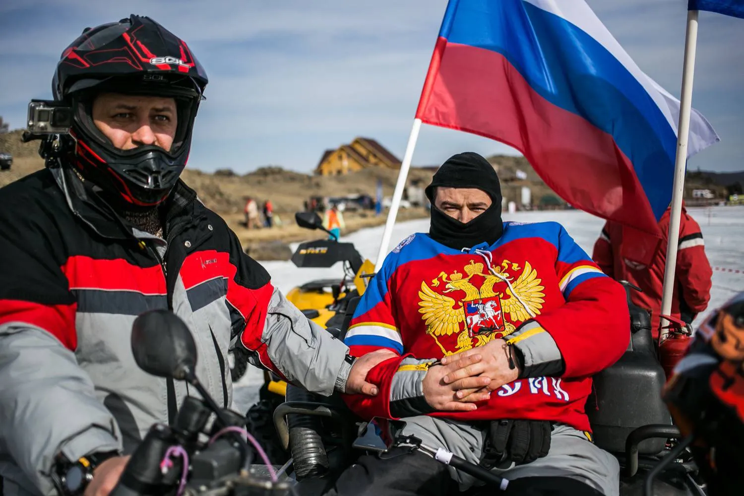 Этот снимок был сделан на фестивале экстремальных видов спорта, где я гулял и запечатлел брутальных мужчин в их естественной среде. Эта фотография вызывает у меня особые чувства. Она, на мой взгляд, отражает суть России. С одной стороны, мы видим крепких, суровых мужчин, украшенных символикой, с другой — проявление нежных и теплых чувств через один единственный жест. В этом контрасте между внешней маскулинностью и внутренней душевностью заключается глубокий смысл, который делает изображение особенно запоминающимся.