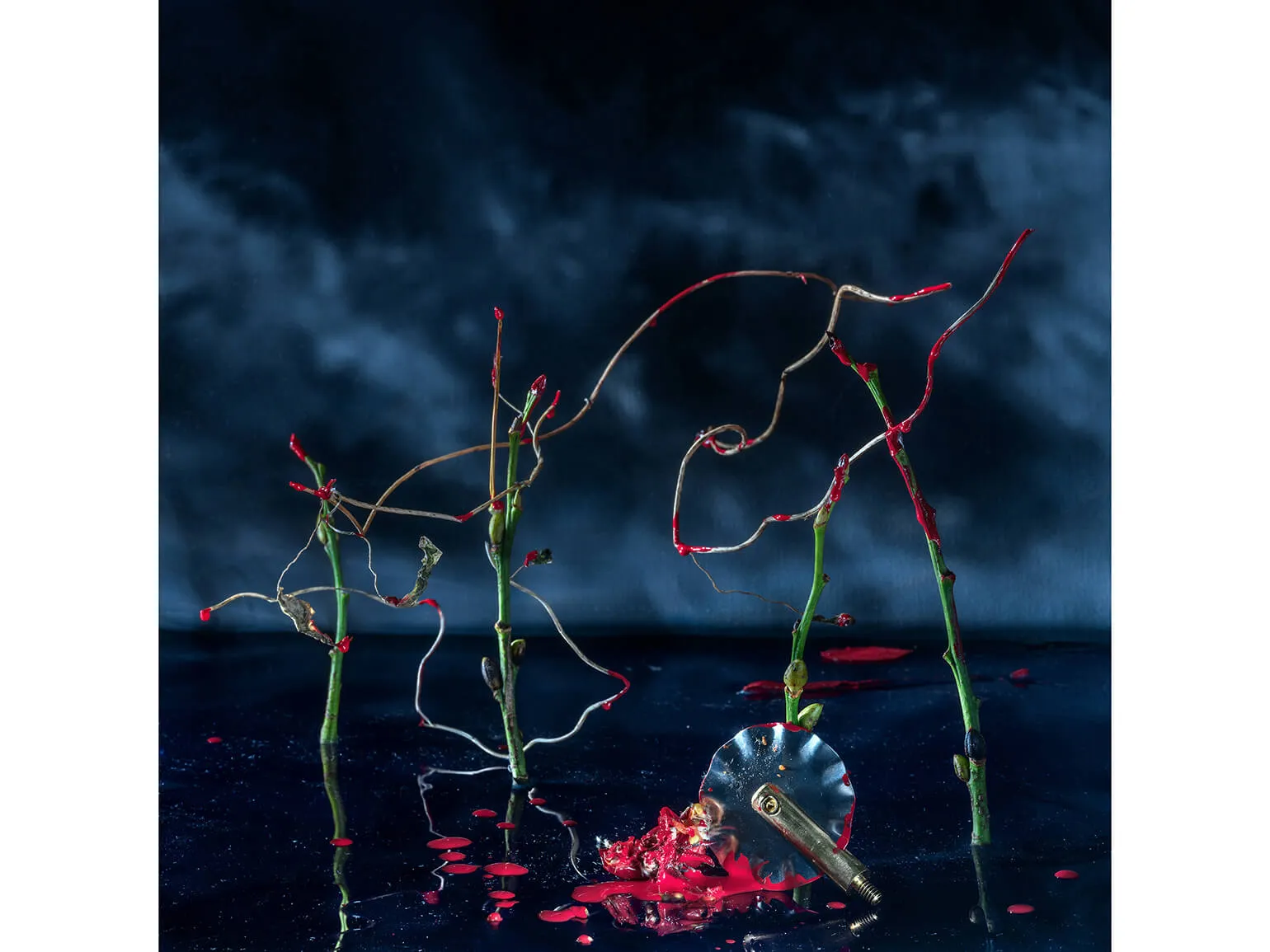 Съемка проводилась с использованием макрообъектива на максимально закрытой диафрагме и с длинной выдержкой. Для увеличения размера исходного изображения применялся метод панорамы, в результате чего один натюрморт состоит из трех отдельных снимков, объединенных в одно целое с помощью программы Photoshop. Такой подход позволяет достичь высокой детализации и качества изображения, что особенно важно в макрофотографии.