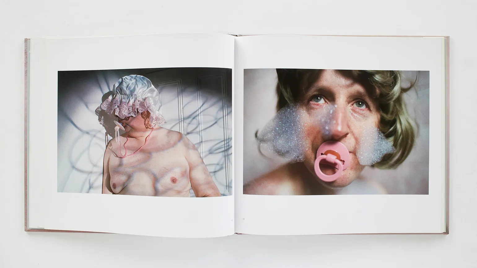 Мы ожидаем увидеть детей, но перед нами оказываются взрослые мужчины. Кожа настоящих младенцев безупречна, в то время как у этих людей она грубая, с угрями и поросшая волосами, иногда с татуировками. Их тела могут быть как дряблыми, так и щуплыми. Объектив Полли Борланд внимательно исследует их образы.