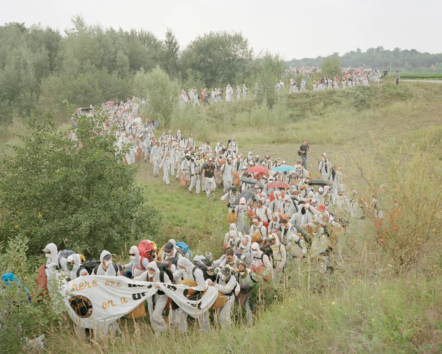Демонстранты проходят вдоль периметра карьера Гарцвайлер II, расположенного вблизи деревни Лютцерат. В минувшие выходные участникам акции удалось легально попасть в населенный пункт. Лютцерат, Германия, 8 января 2023 года.