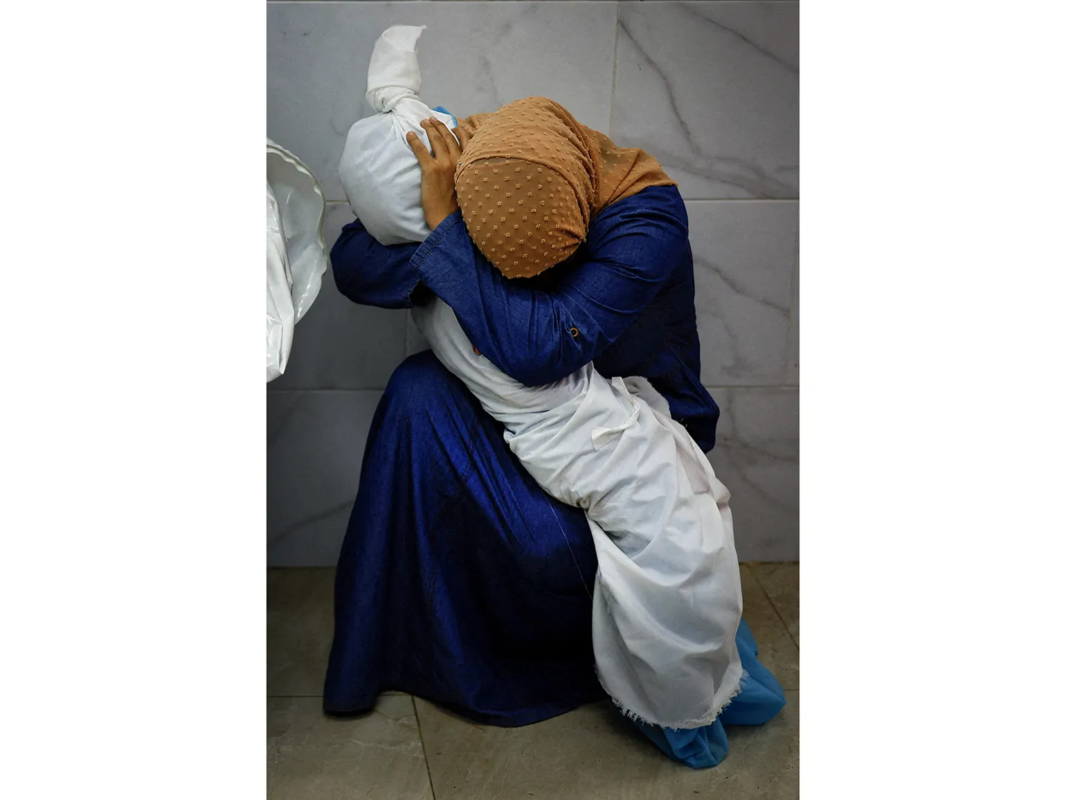 Инас Абу Маамар, 36 лет, держит на руках тело своей пятилетней племянницы Сали, которая трагически погибла вместе с четырьмя другими членами семьи в результате удара израильской ракеты по их дому. Это событие произошло в Хан Юнис, Газе, 17 октября 2023 года, и стало частью более широкого конфликта, который продолжает уносить жизни мирных жителей. Ситуация в регионе остается напряженной, и такие трагедии подчеркивают гуманитарные последствия военных действий.